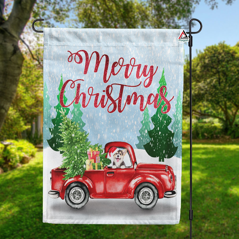 Merry Christmas Farm House Flag, Christmas Red Truck Flag