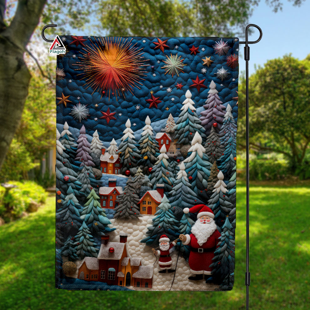Merry Christmas Flag, Christmas Village Flag, Santa Claus Xmas Garden Flag, Season Greetings