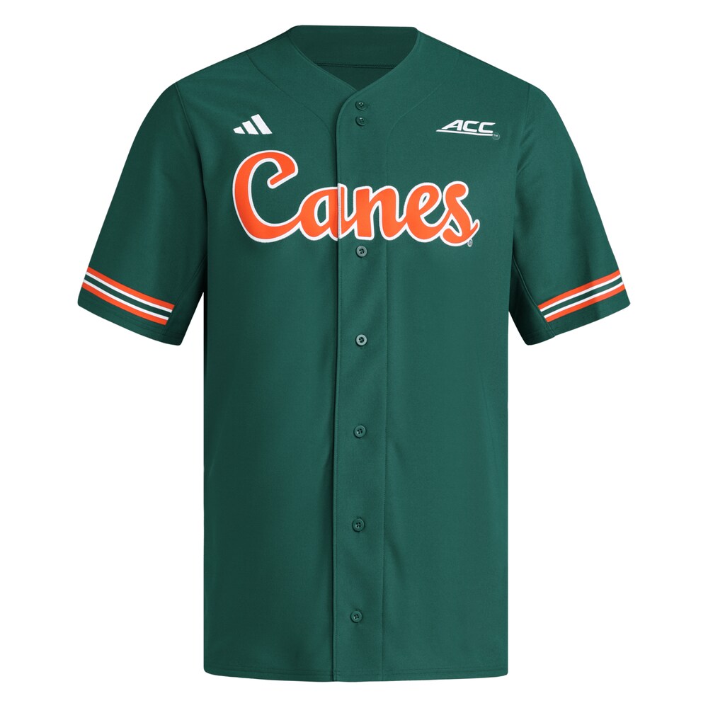 Show your pride with the Miami Hurricanes Reversible Retro Full-Button Baseball Jersey in vibrant green. This limited Replica Fan Edition offers authentic style and unmatched comfort, perfect for game day or casual wear. Featuring durable fabric and a reversible design, it lets you switch up your look effortlessly. Elevate your fan gear collection and explore more NCAA College Jerseys to celebrate your team spirit in style.