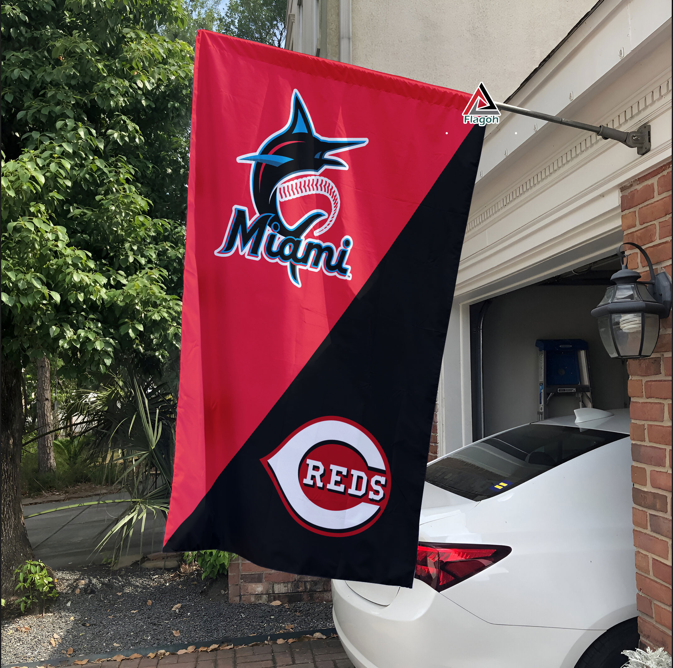 Miami Marlins vs Cincinnati Reds House Divided Flag, MLB House Divided Flag