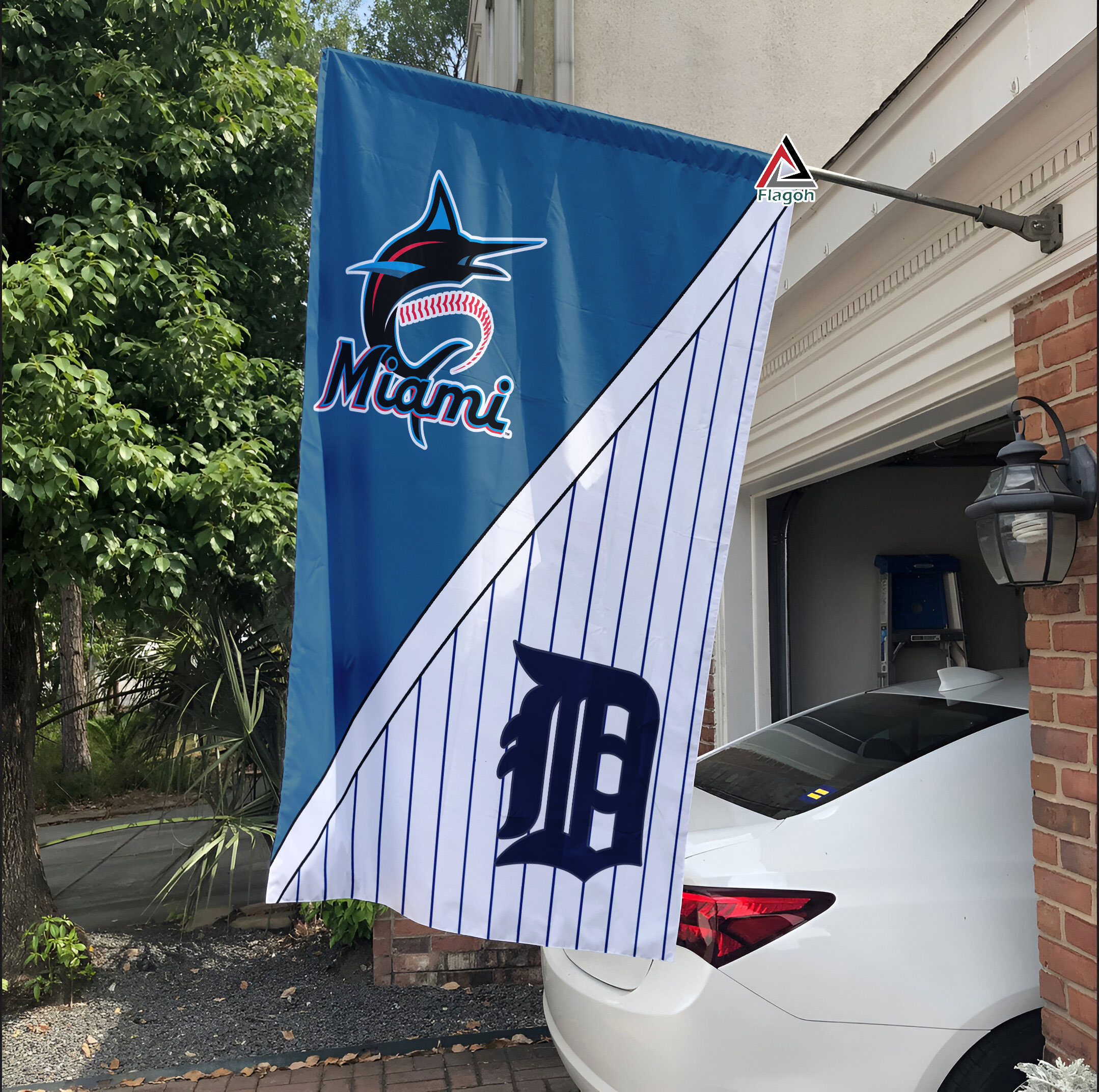 Miami Marlins vs Detroit Tigers House Divided Flag, MLB House Divided Flag