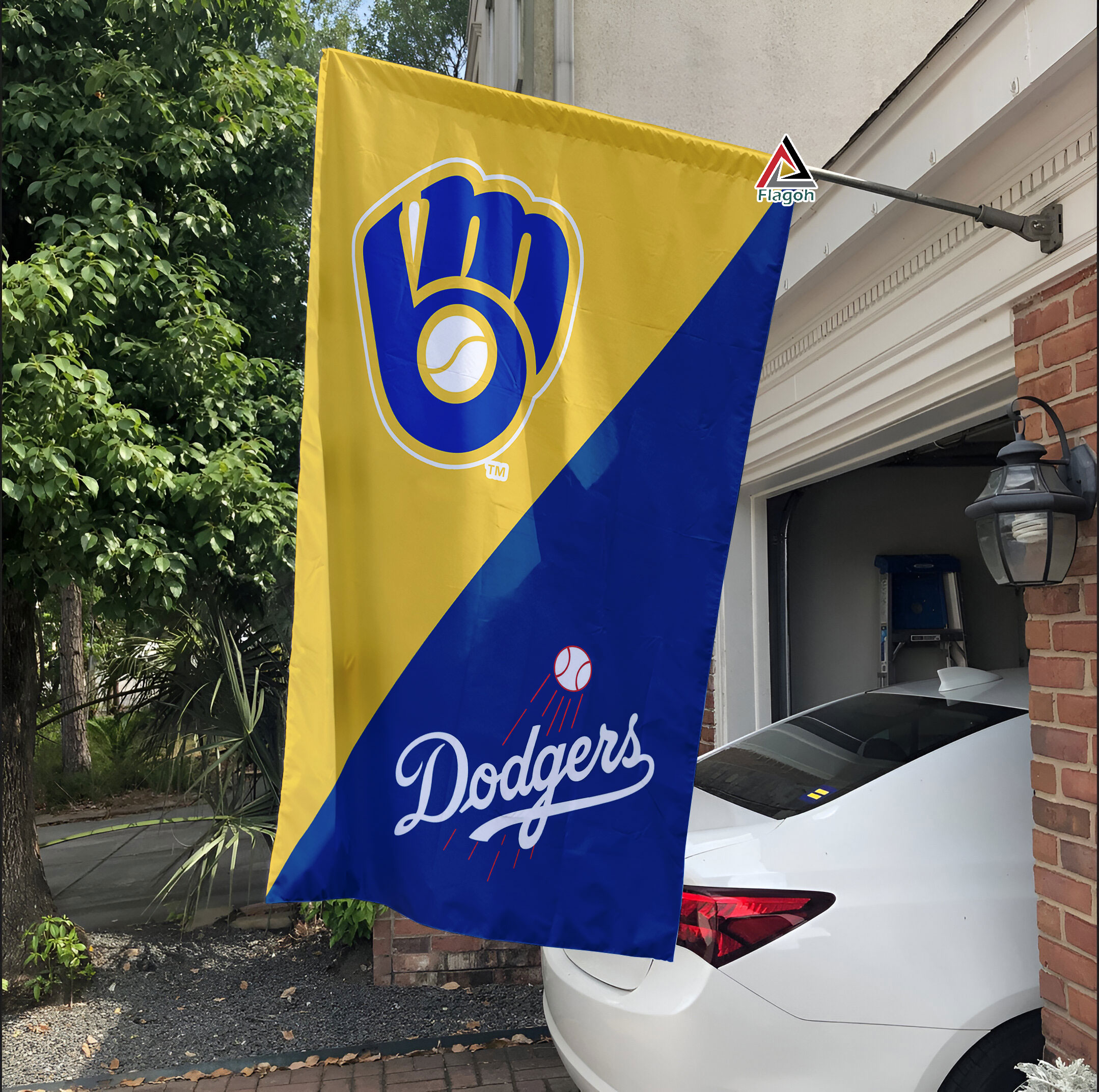 Milwaukee Brewers vs Los Angeles Dodgers House Divided Flag, MLB House Divided Flag