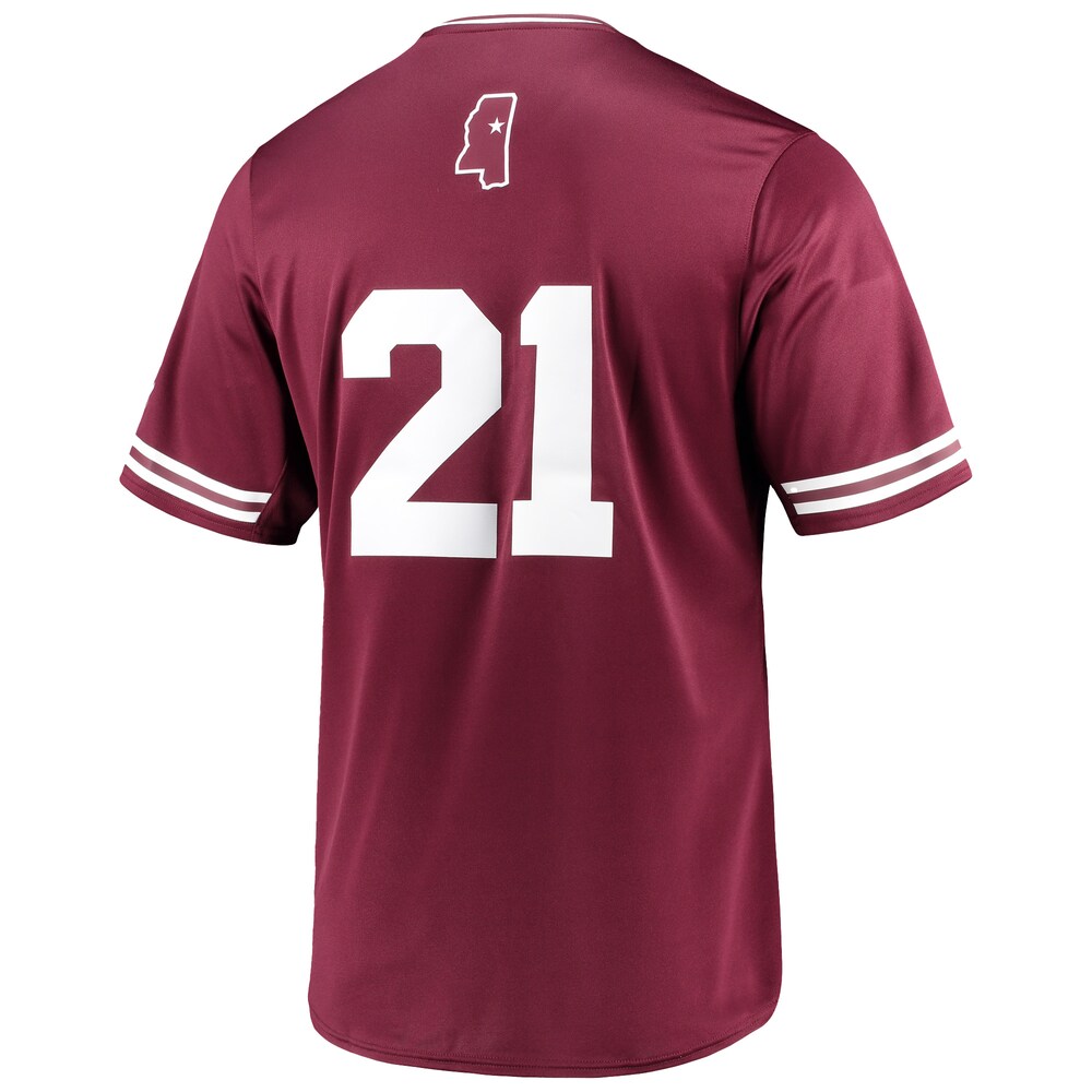 Show your true colors with the Mississippi State Bulldogs Replica V-Neck Baseball Jersey in maroon. This Limited Replica Fan Edition offers authentic style and superior comfort, perfect for game days or casual wear. Crafted for durability and fan pride, it’s a must-have for every Bulldogs supporter. Explore more fan gear in our NCAA College Jerseys collection to complete your look.