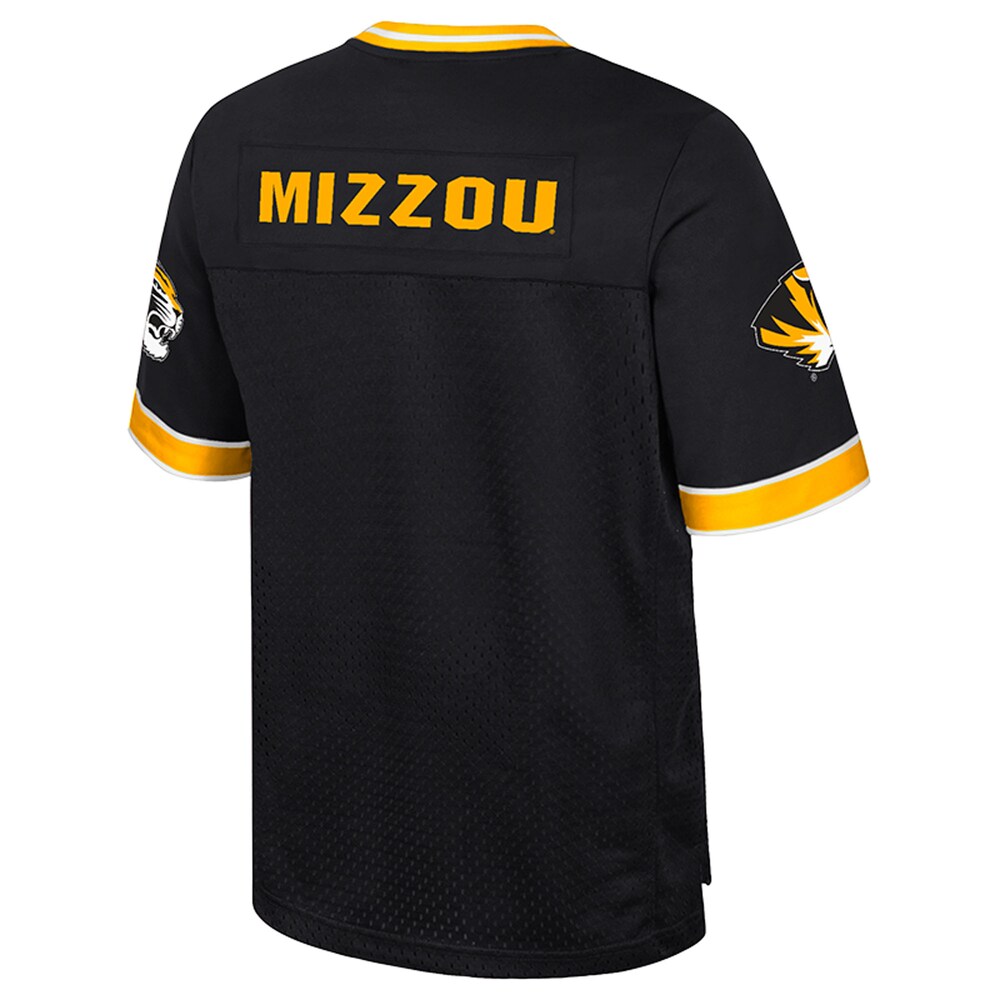 Show your true colors with the Missouri Tigers Colosseum Nothing But The Hits Football Jersey in sleek black. This Limited Replica Fan Edition jersey offers authentic design and superior comfort, perfect for passionate fans. Crafted for durability and style, it’s your ultimate game day companion. Elevate your fan gear collection by exploring our full range of NCAA College Jerseys and represent your team with pride.