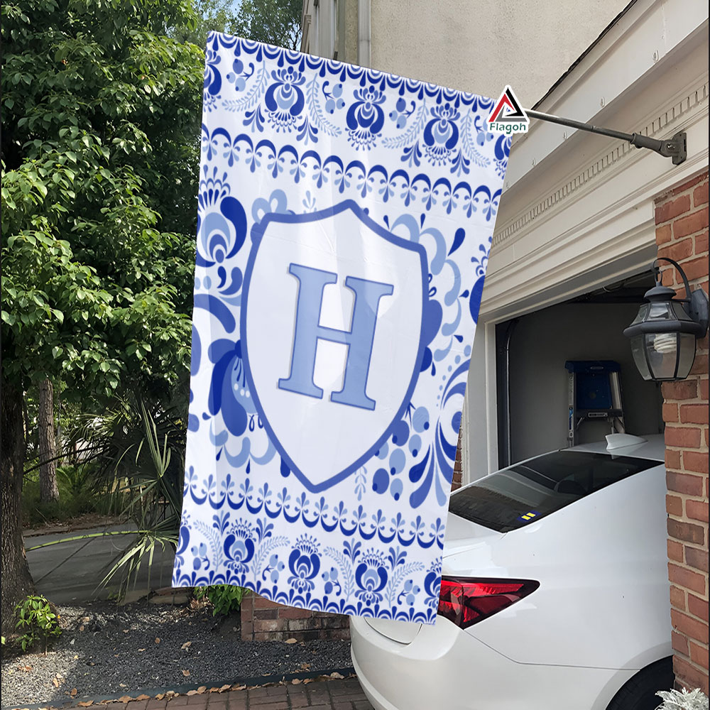 The Monogrammed Welcome Garden & House Flag, Custom Blue Floral Chinoiserie Spring & Summer Garden Flag is the perfect way to showcase your personal style and create a inviting outdoor space. Whether you’re a homeowner looking to add a touch of personalized charm, a business owner wanting to make a great first impression, or someone who simply loves the timeless beauty of chinoiserie design, this flag is sure to impress. With its eye-catching pattern and customizable monogram, this flag is a versatile and stylish addition to any home or garden.