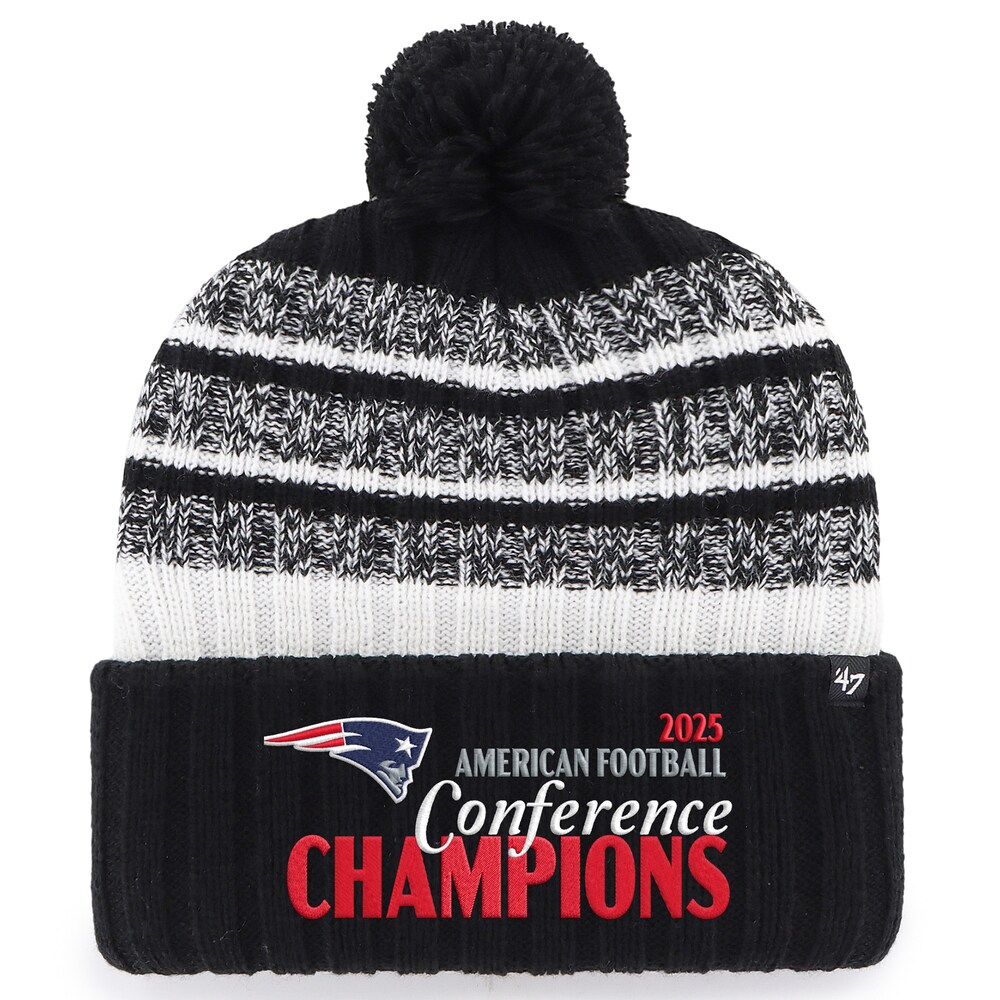 New England Patriots Black ’47 2025 AFC Champions Tavern Cuffed Knit Hat – Stylish Comfort for Every Fan
