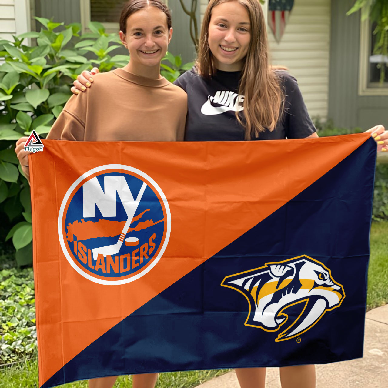New York Islanders vs Nashville Predators House Divided Flag, NHL House Divided Flag