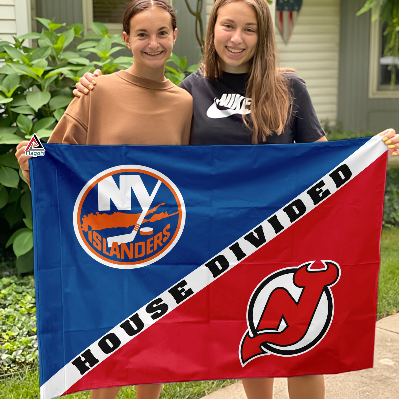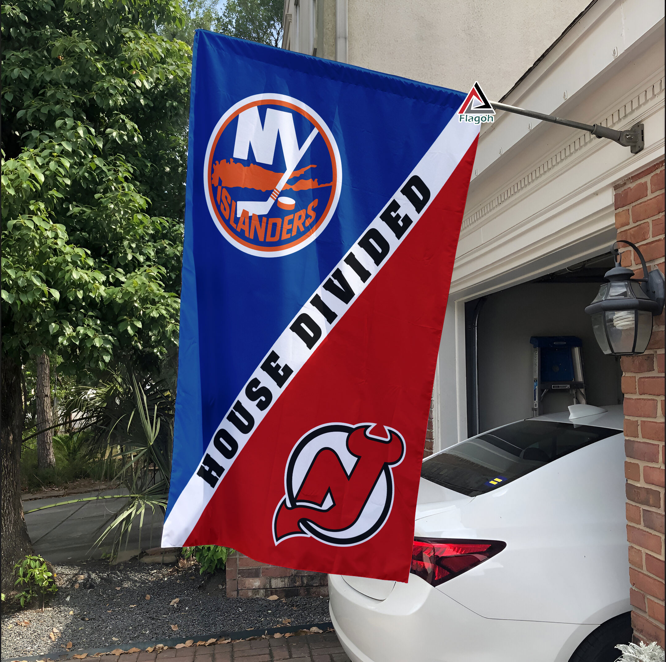 New York Islanders vs New Jersey Devils House Divided Flag, NHL House Divided Flag