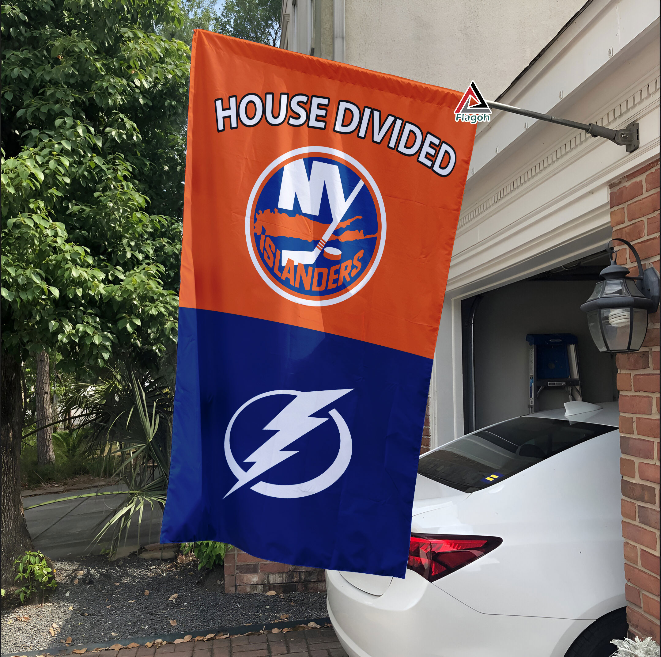 New York Islanders vs Tampa Bay Lightning House Divided Flag, NHL House Divided Flag