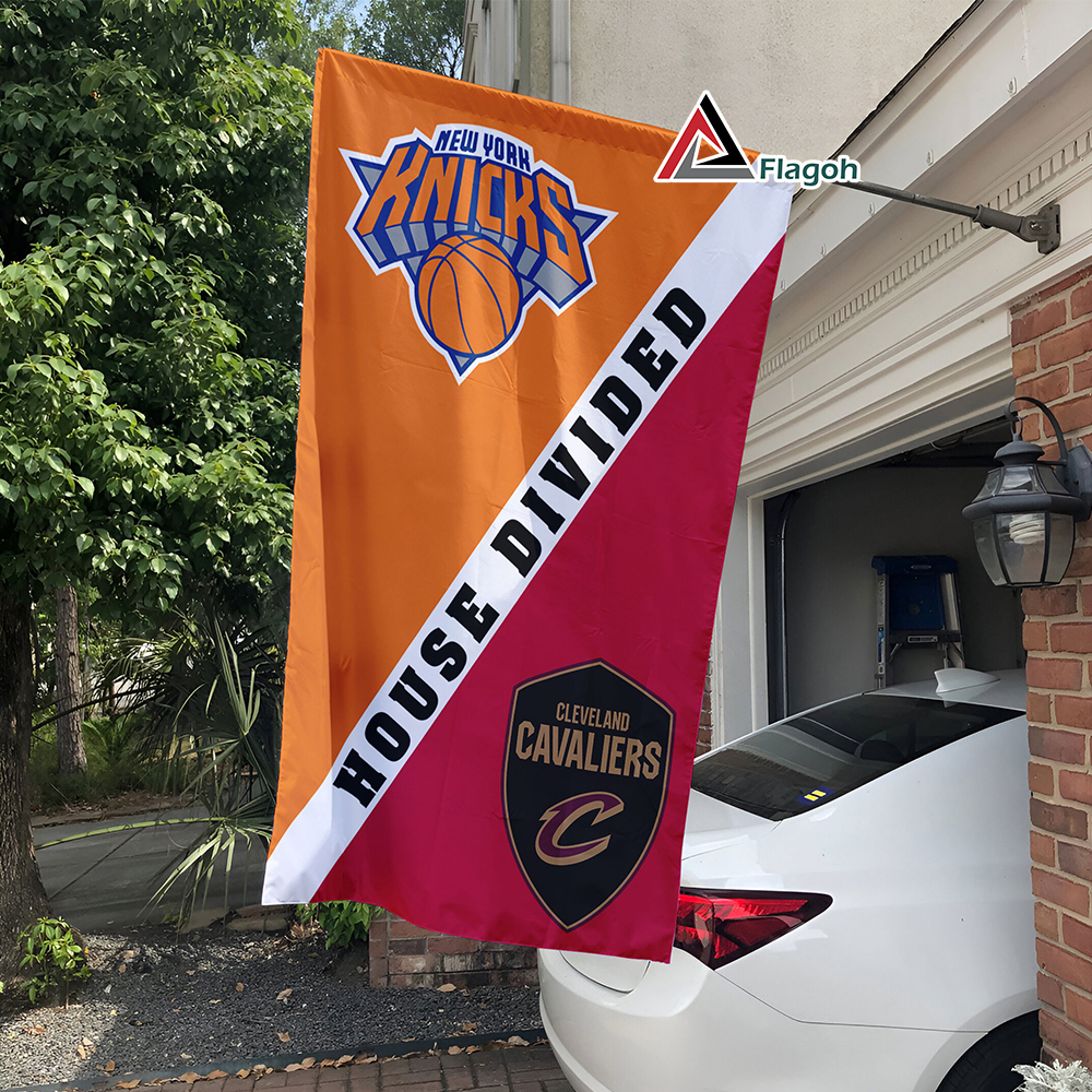 New York Knicks vs Cleveland Cavaliers House Divided Flag, NBA House Divided Flag