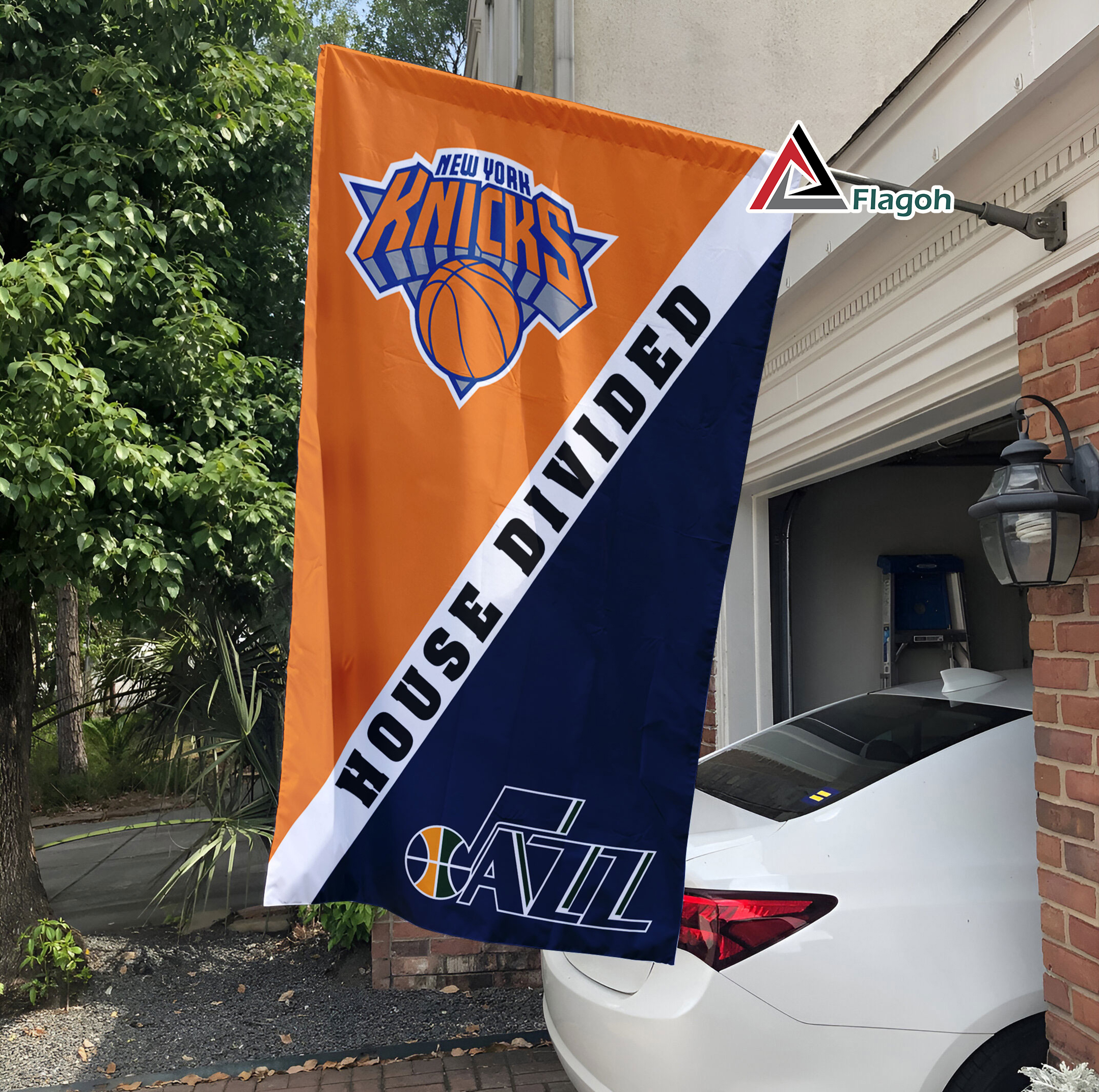 New York Knicks vs Utah Jazz House Divided Flag, NBA House Divided Flag
