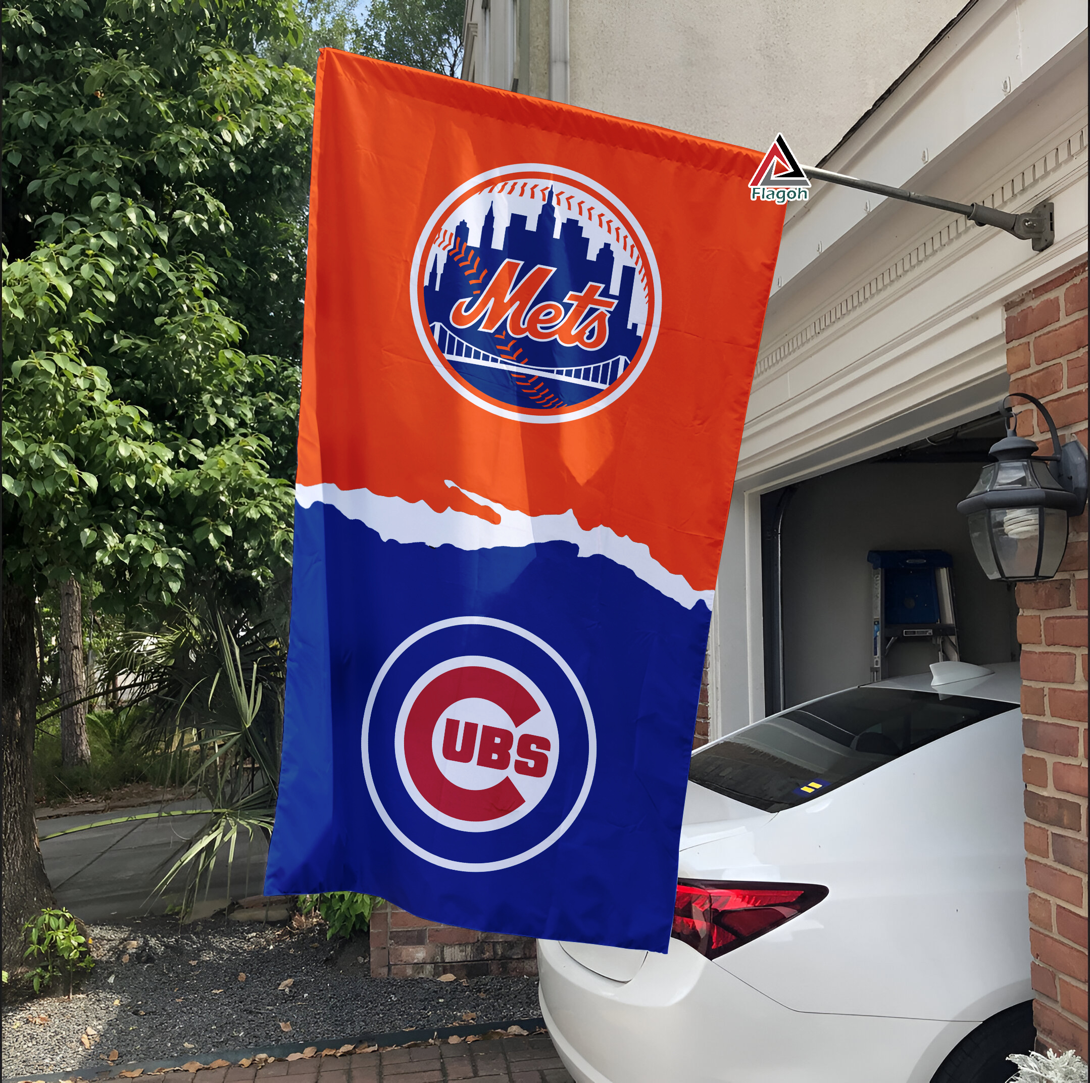 New York Mets vs Chicago Cubs House Divided Flag, MLB House Divided Flag