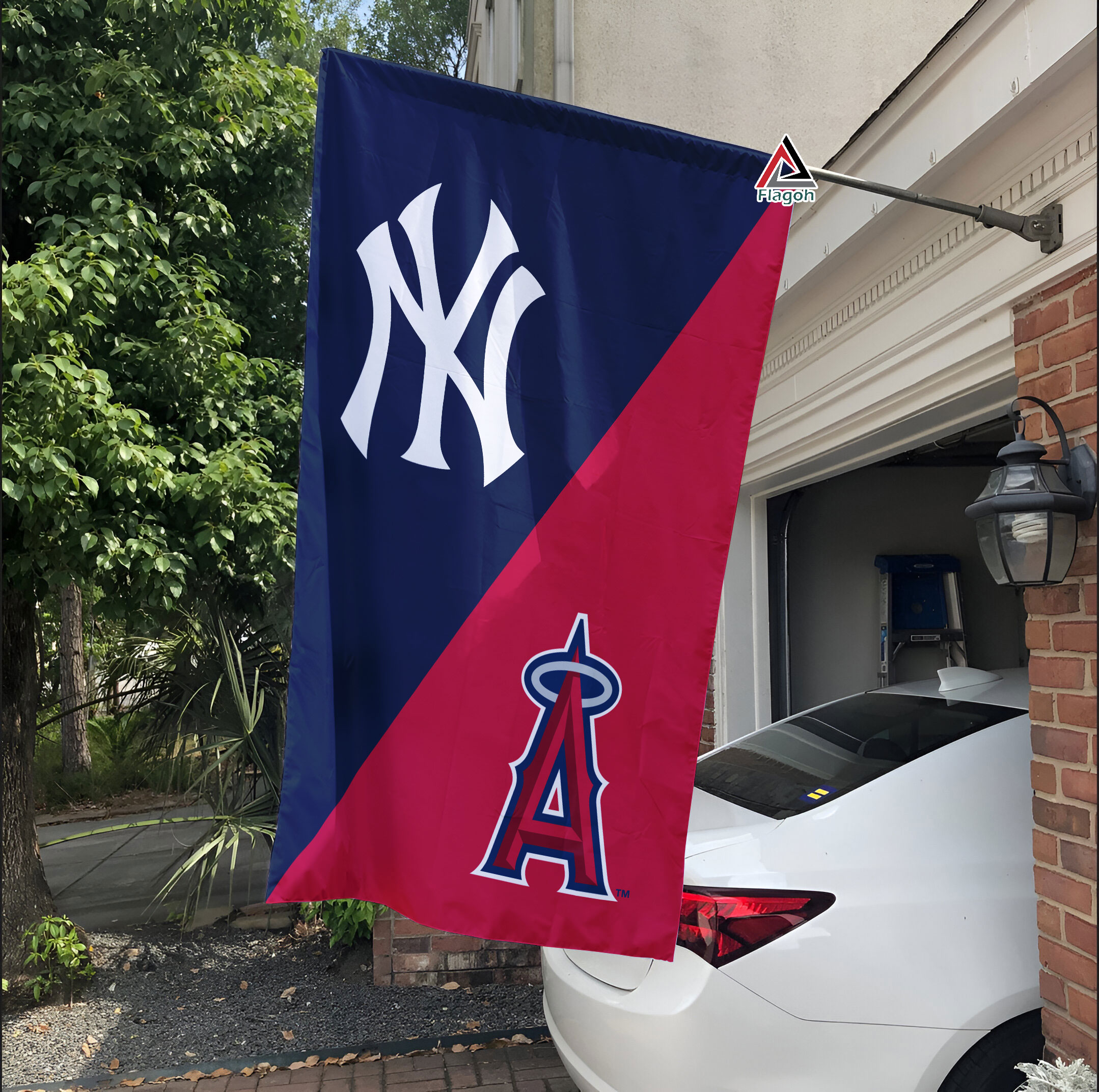 New York Yankees vs Los Angeles Angels House Divided Flag, MLB House Divided Flag
