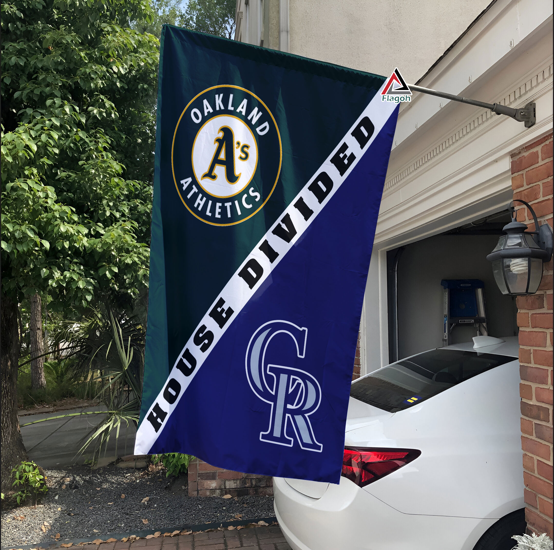 Oakland Athletics vs Colorado Rockies House Divided Flag, MLB House Divided Flag