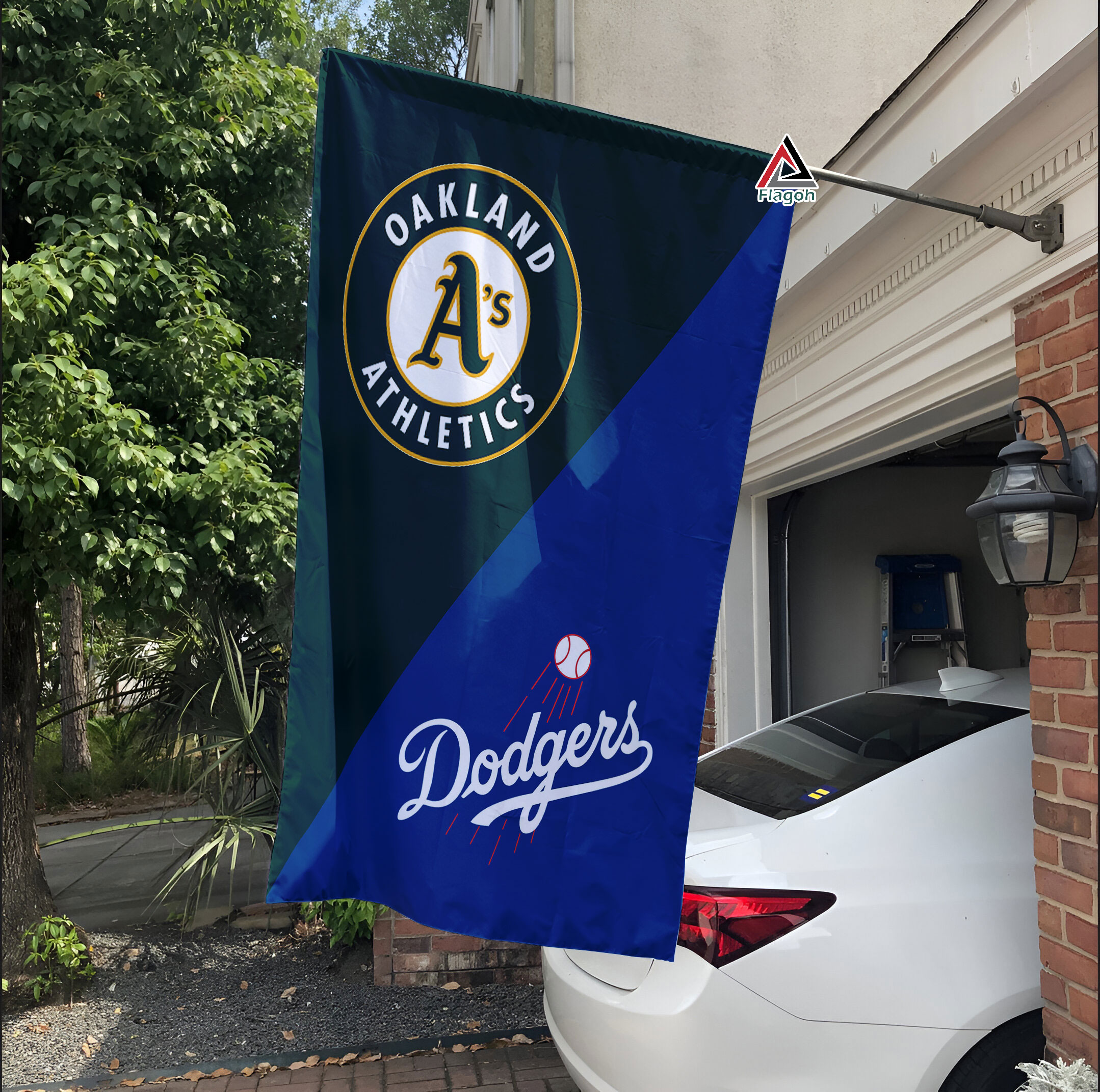 Oakland Athletics vs Los Angeles Dodgers House Divided Flag, MLB House Divided Flag