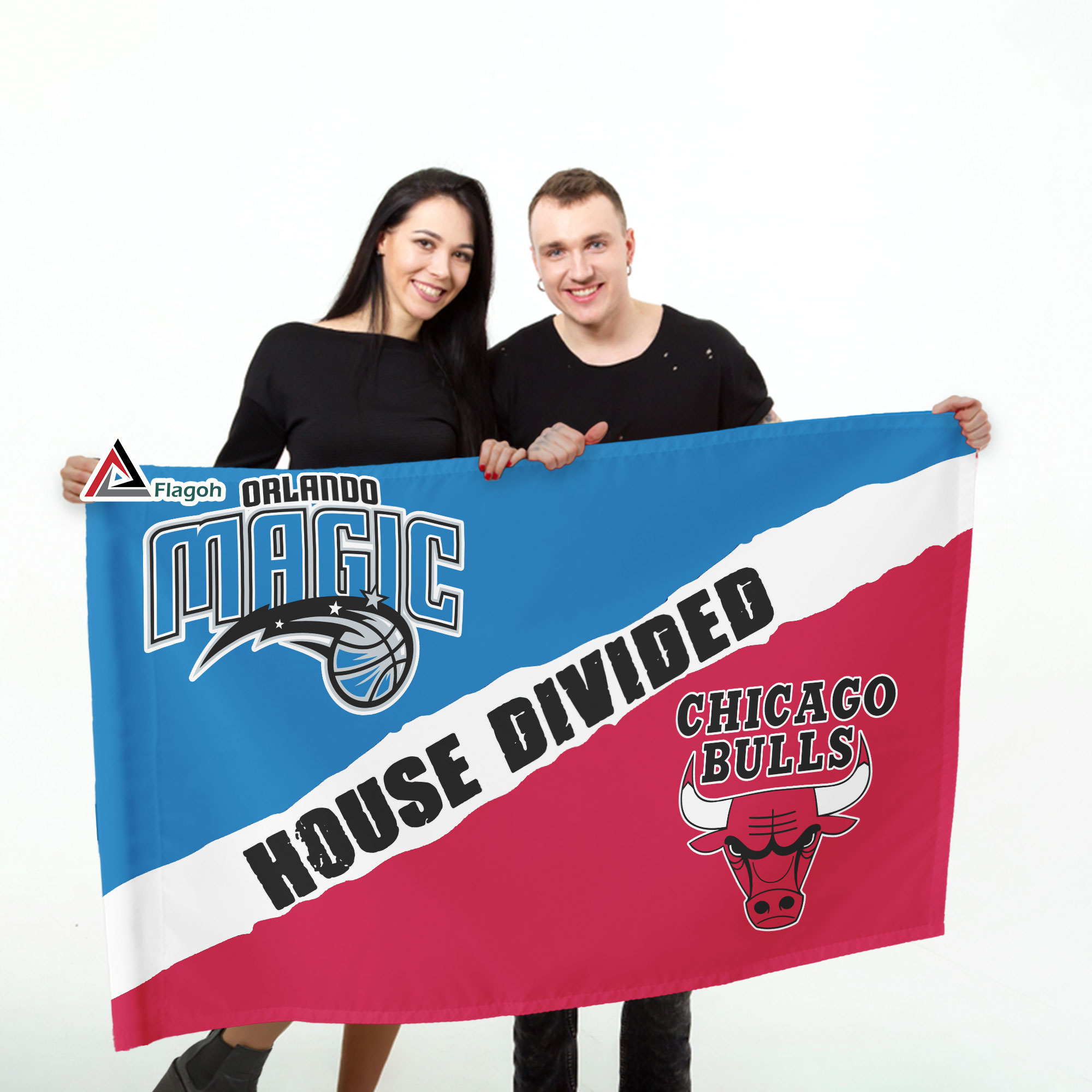Orlando Magic vs Chicago Bulls House Divided Flag, NBA House Divided Flag