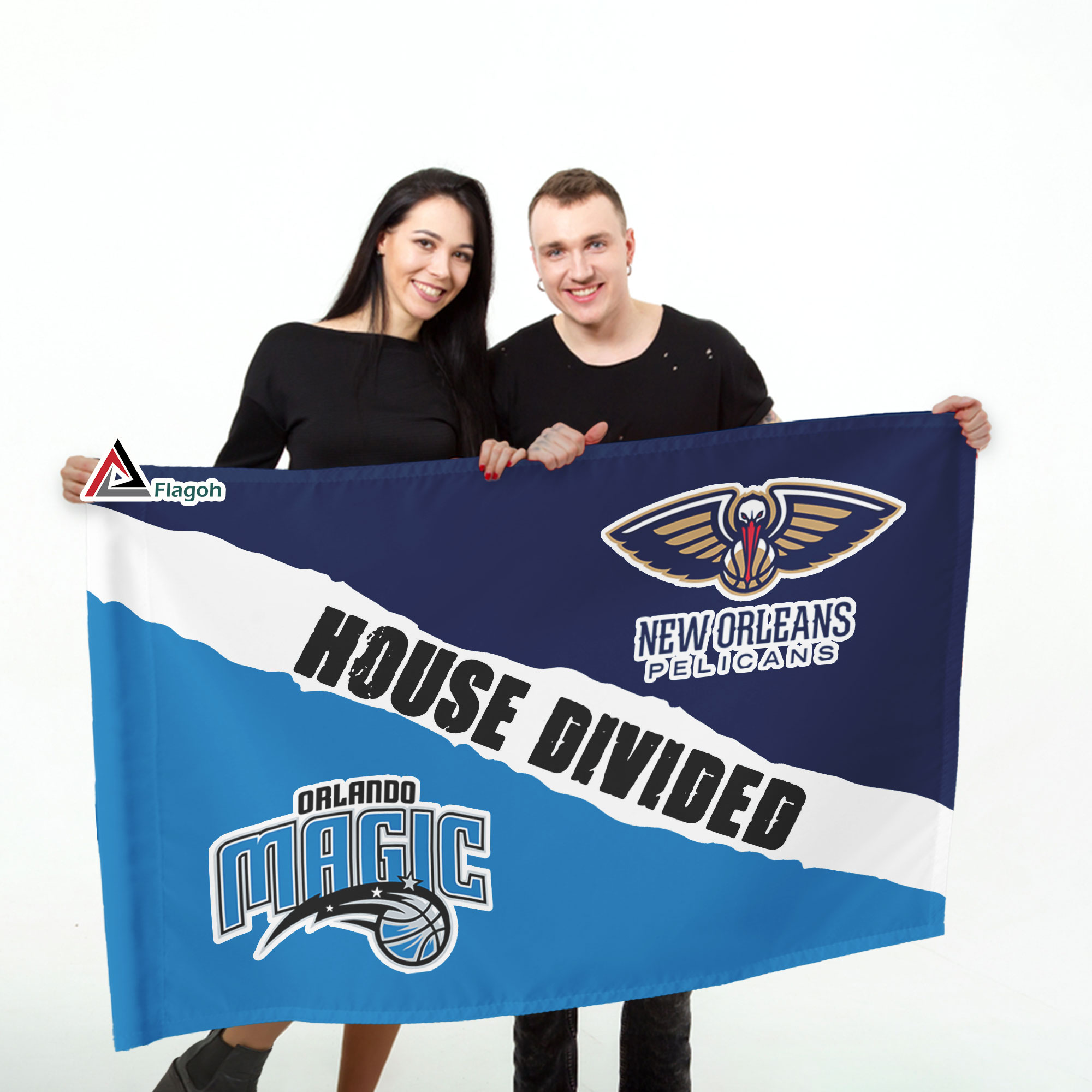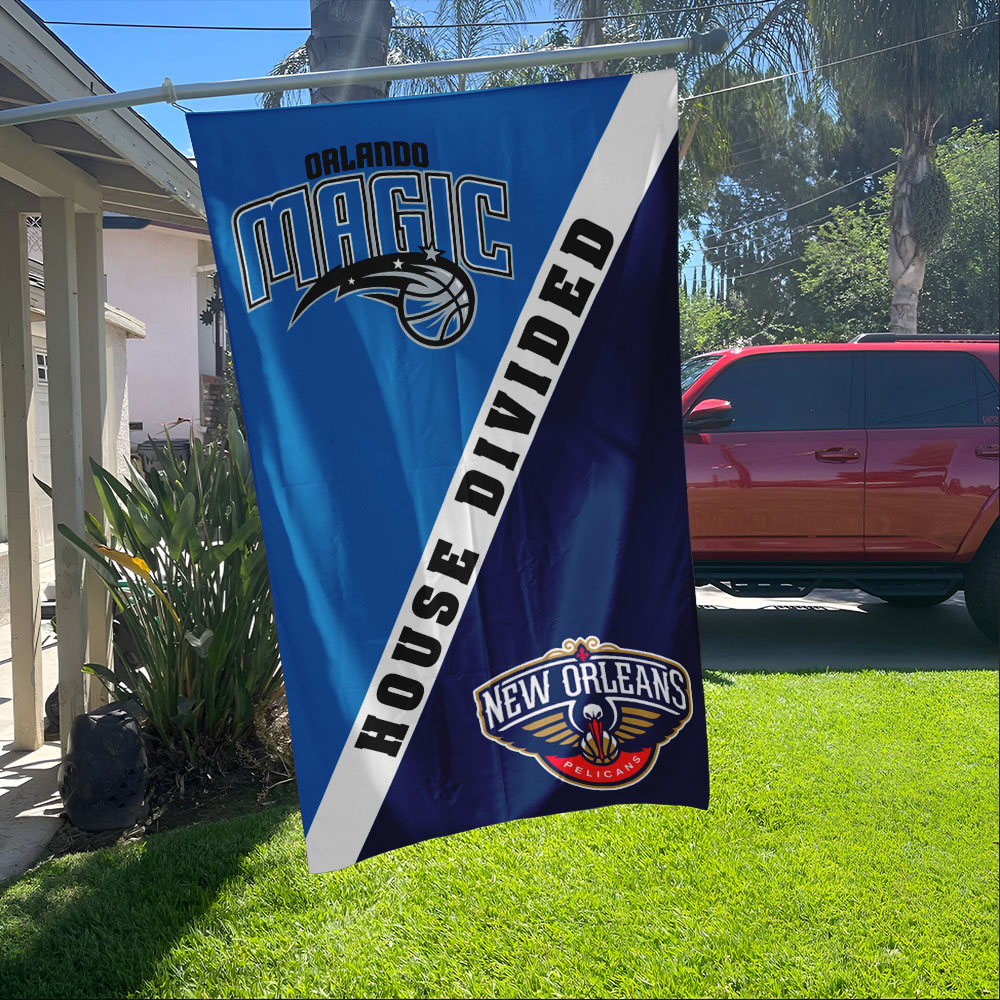 Orlando Magic vs New Orleans Pelicans House Divided Flag, NBA House Divided Flag