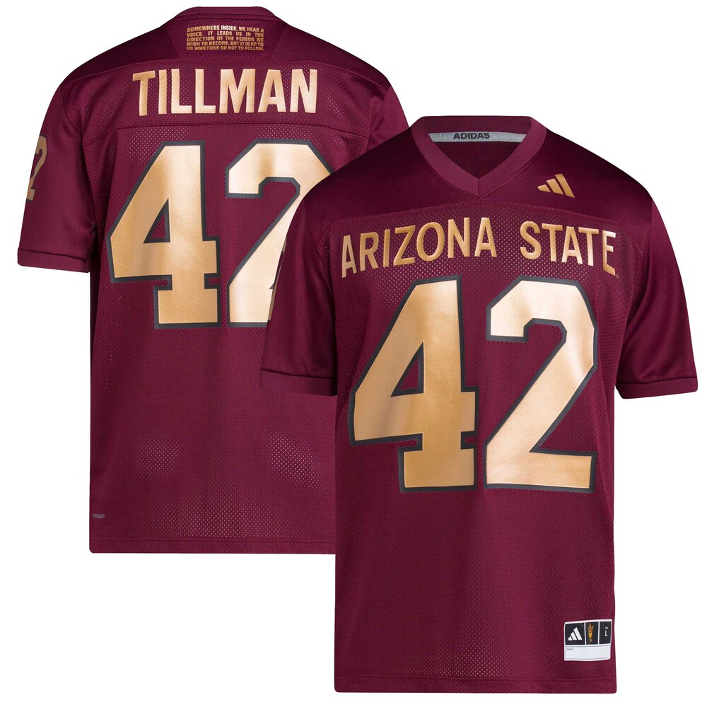 Celebrate legendary Pat Tillman with the 42 Arizona State Sun Devils Football Icon Premier Jersey in striking maroon. This limited replica fan edition offers authentic design, premium comfort, and durable fabric—perfect for passionate supporters. Show your team spirit and honor a true icon while enjoying unmatched style and quality. Explore more NCAA College Jerseys to complete your fan gear collection.