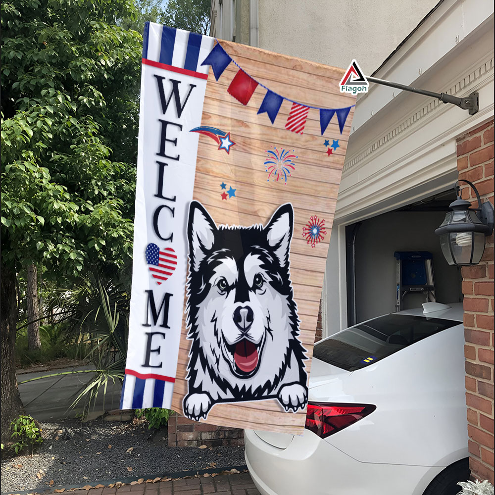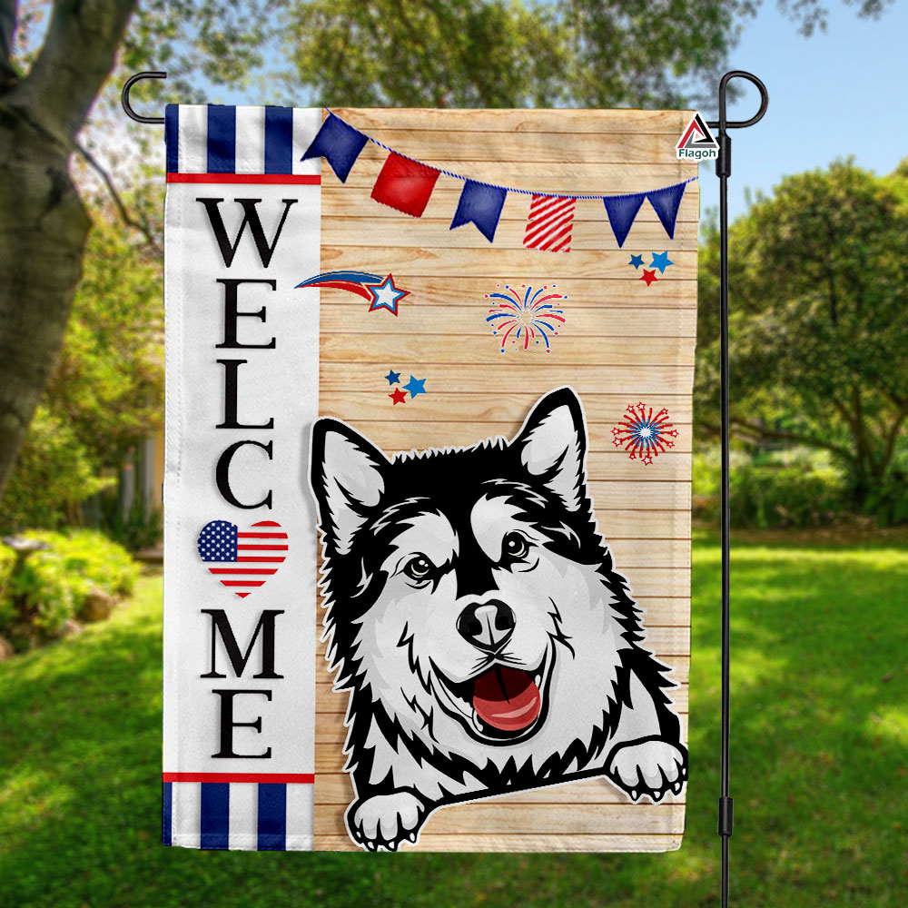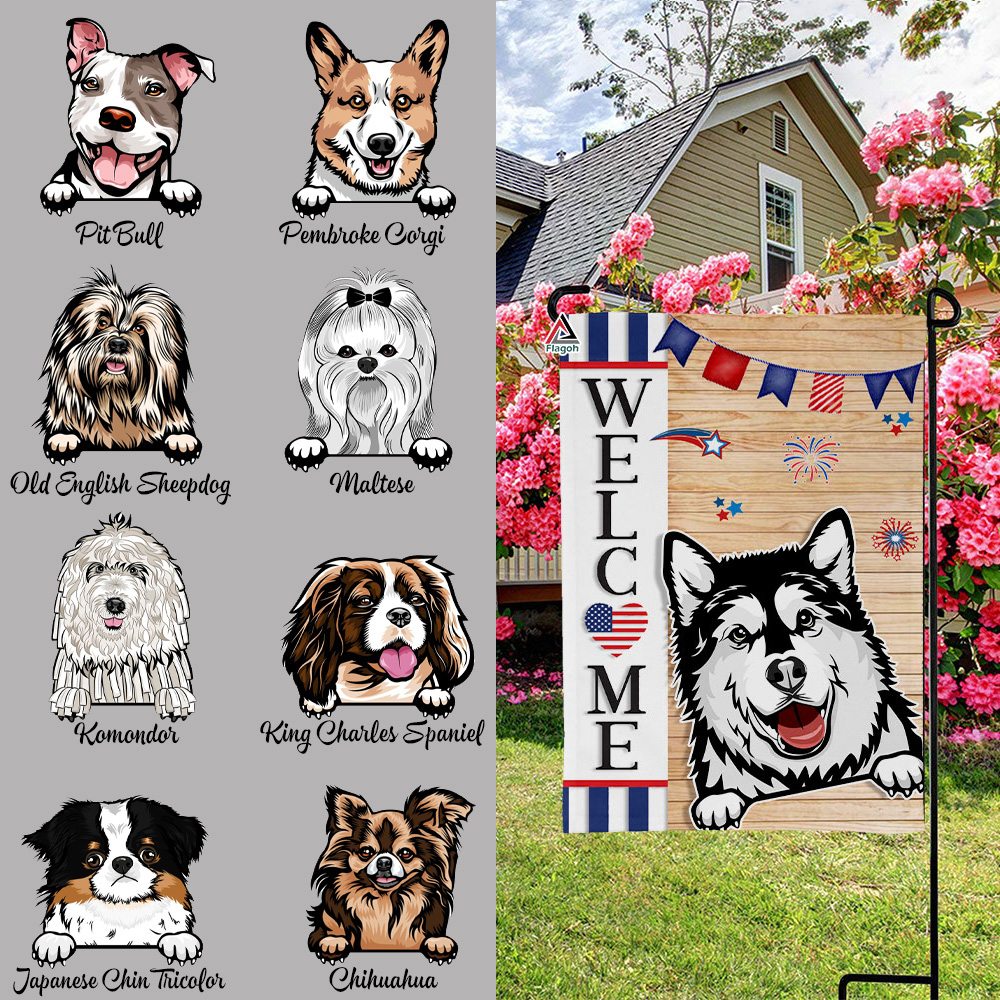 Patriotic Dog Breed House Flag, Personalised 4th of July Garden Flag, Custom Pet Welcome Flag