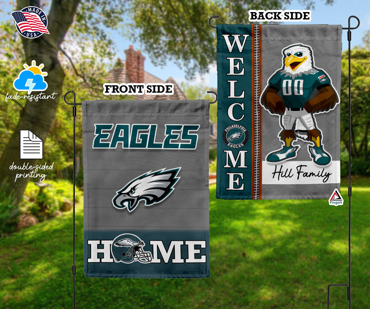 Philadelphia Eagles Football Flag, Swoop Mascot Personalized Football Fan Welcome Flags, Custom Family Name NFL Decor