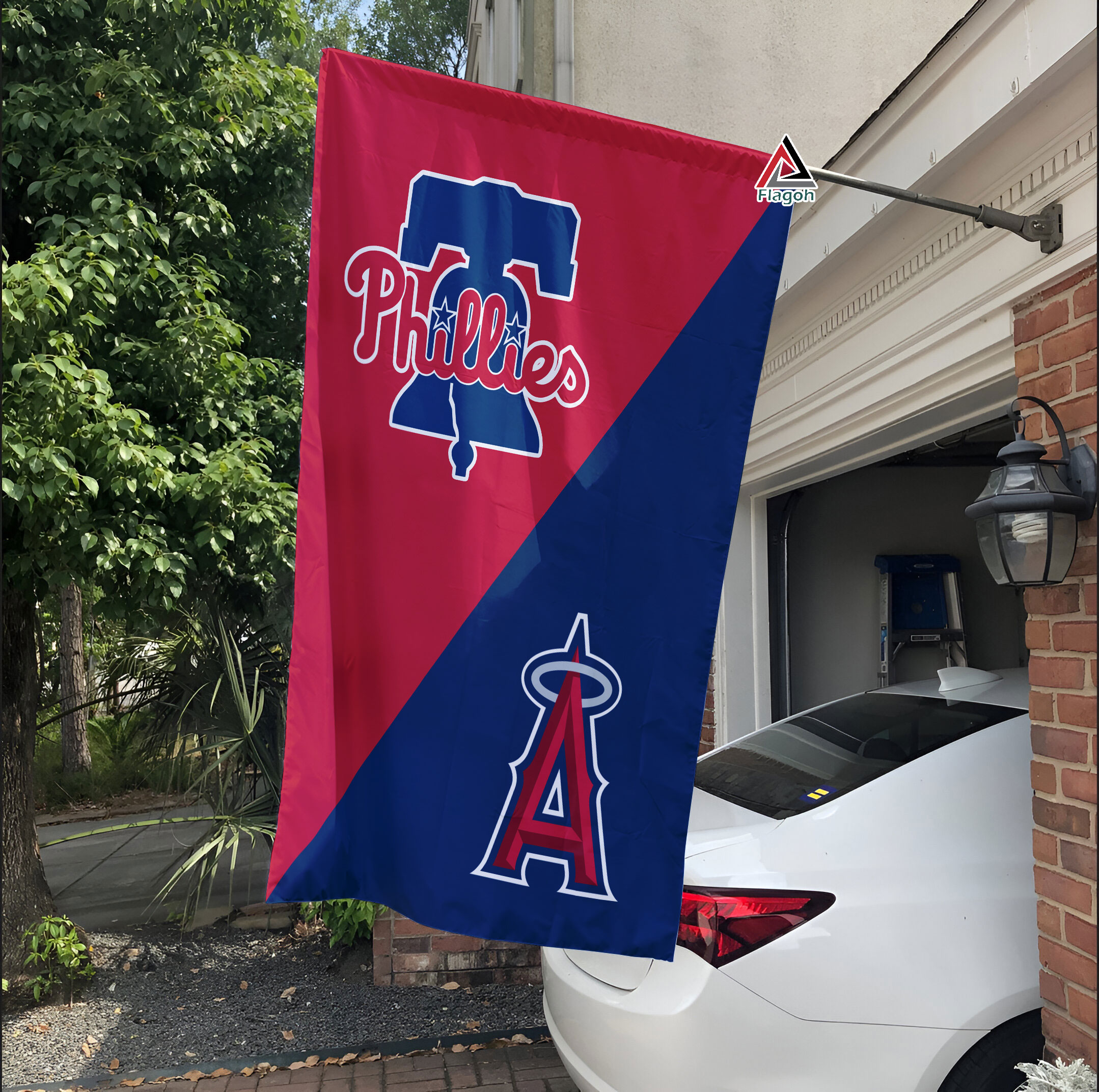 Philadelphia Phillies vs Los Angeles Angels House Divided Flag, MLB House Divided Flag