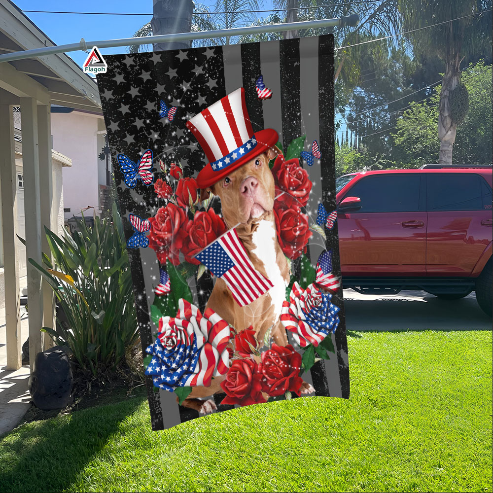 Pitbull Dog Breed Patriotic House Flag, Pitbull Celebrate Independence Day Flag