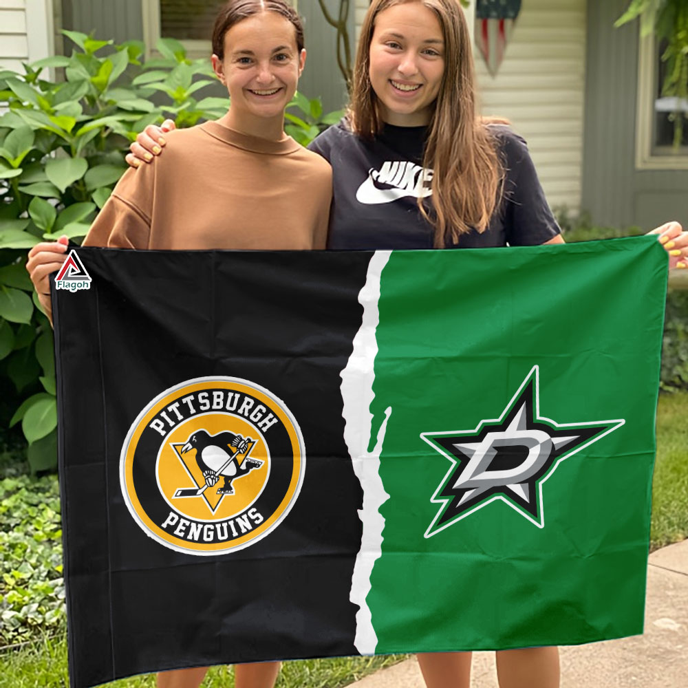 Pittsburgh Penguins vs Dallas Stars House Divided Flag, NHL House Divided Flag