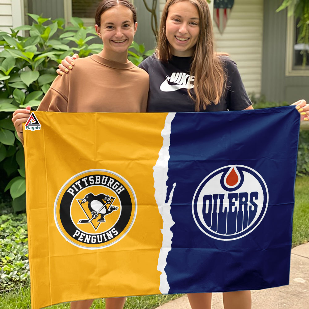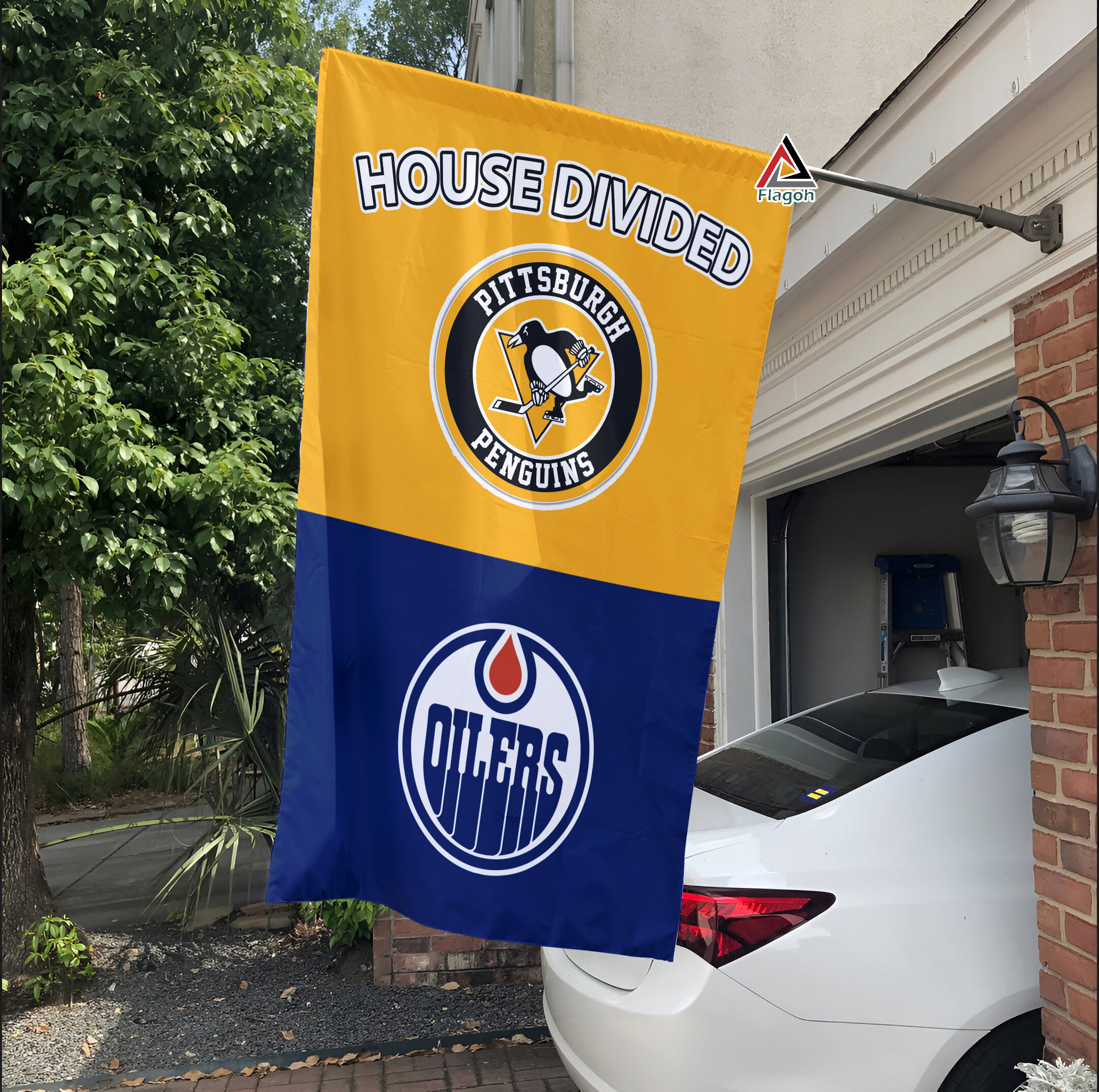Pittsburgh Penguins vs Edmonton Oilers House Divided Flag, NHL House Divided Flag