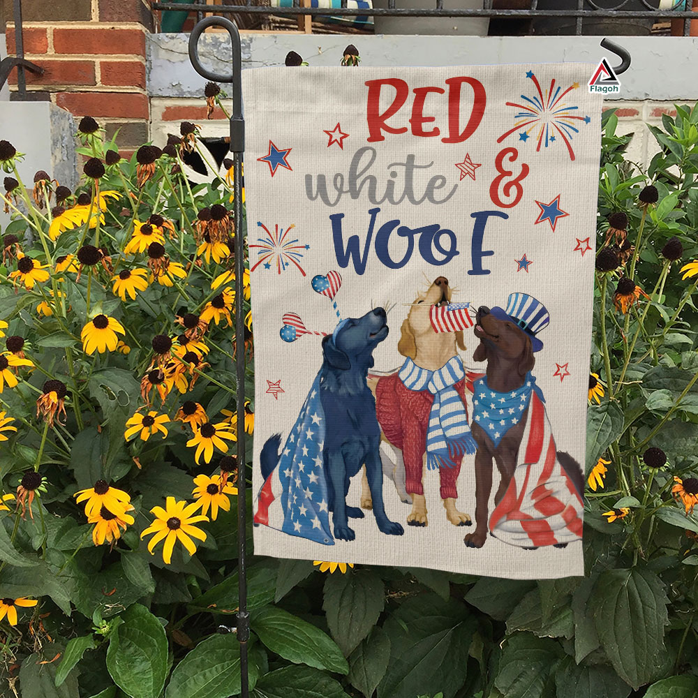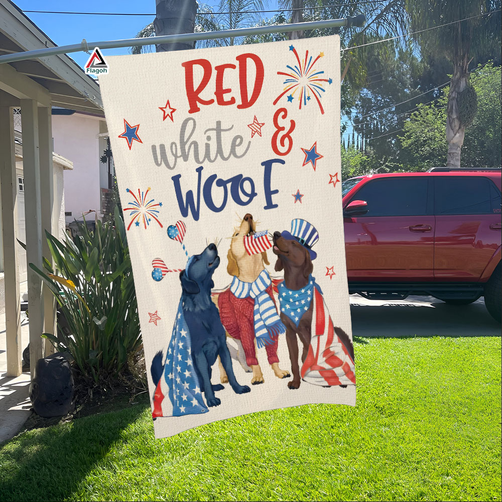 Red White and Woof Flag, Retriever Dog Breed Patriotic Flag, Happy America 4th Of July Flag