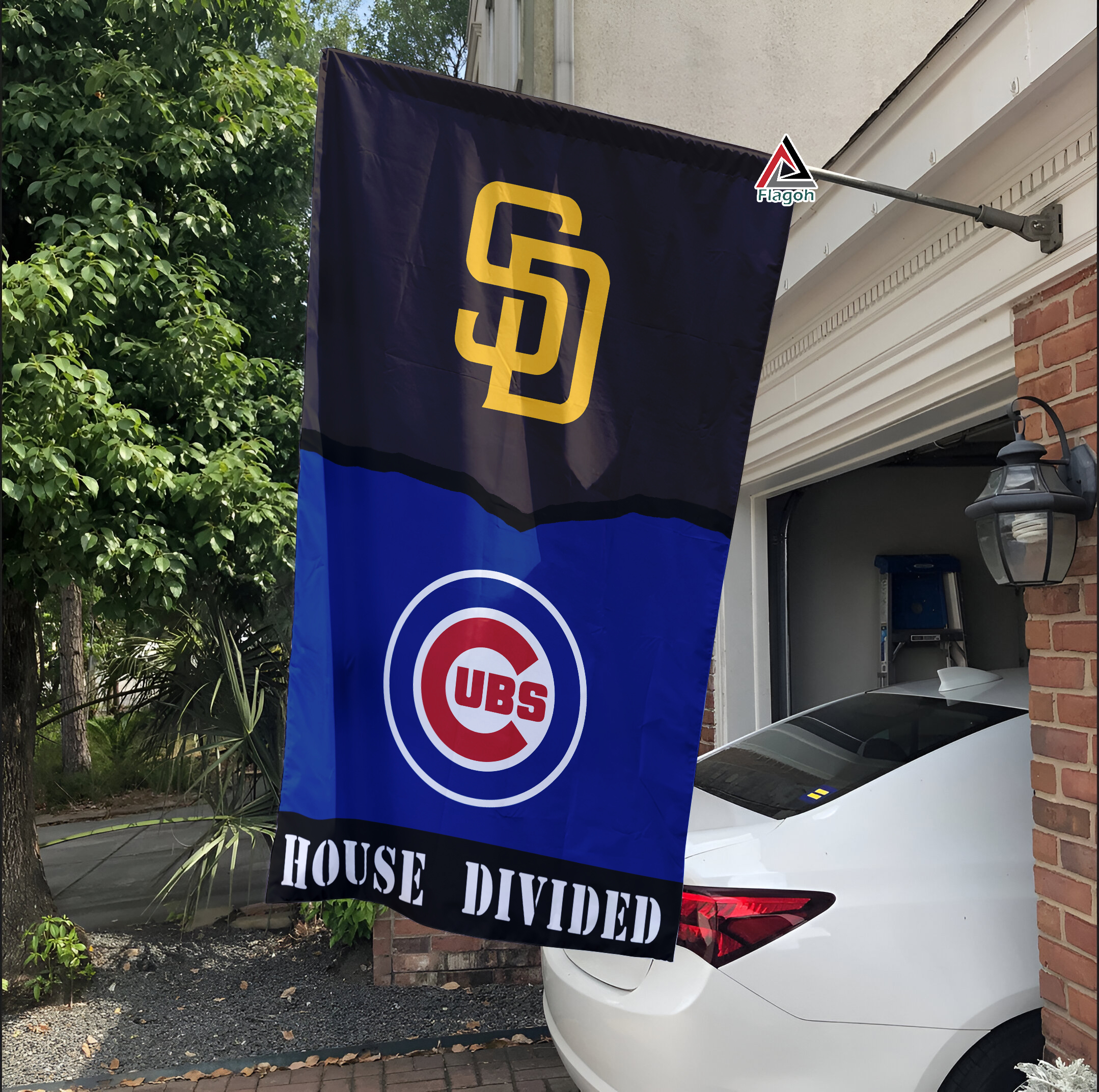 Do your baseball loyalties lie between the sunny shores of San Diego and the ivy-covered walls of Wrigley Field? This Padres vs Cubs House Divided Flag is the perfect solution!