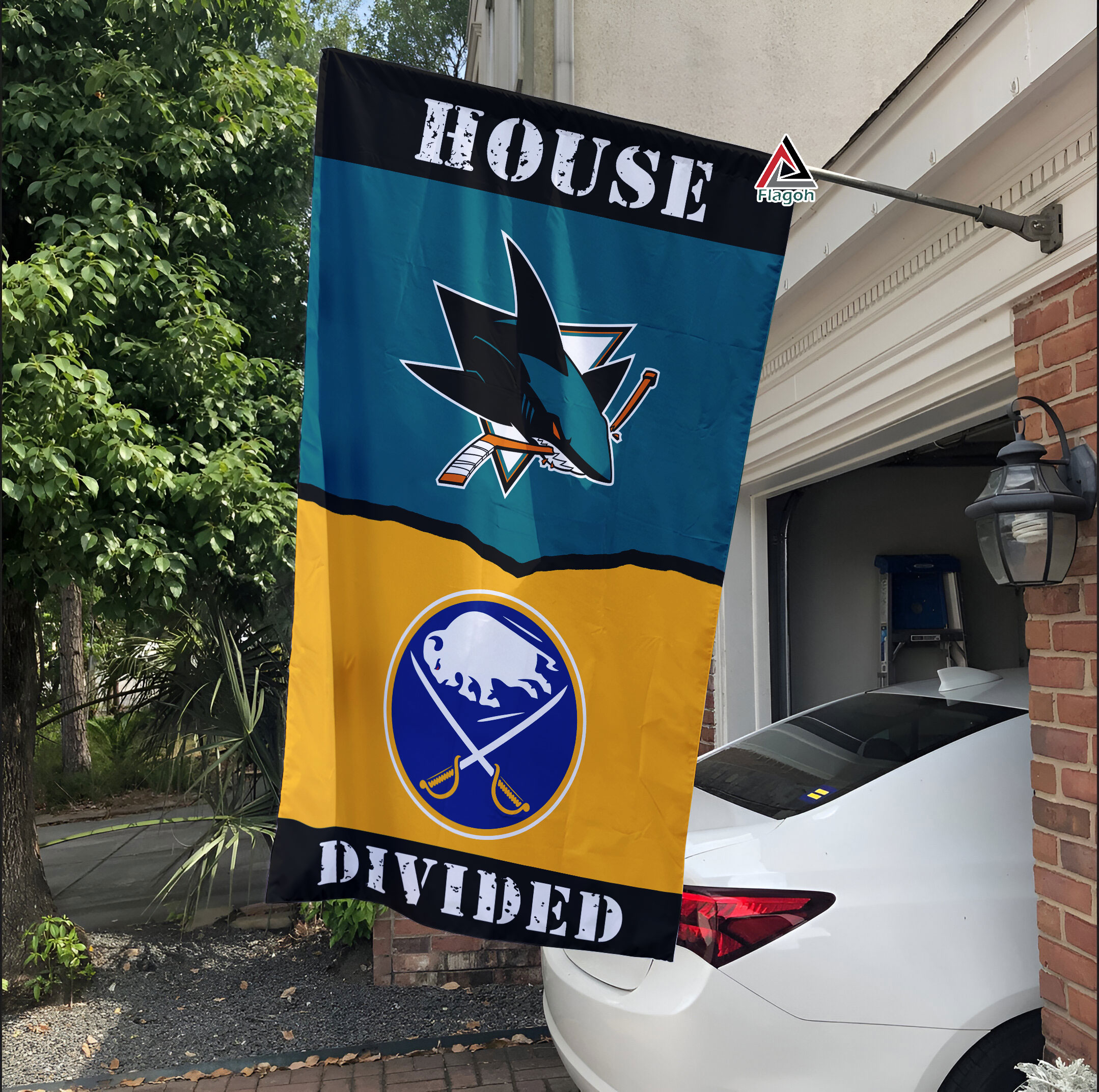 San Jose Sharks vs Buffalo Sabres House Divided Flag, NHL House Divided Flag
