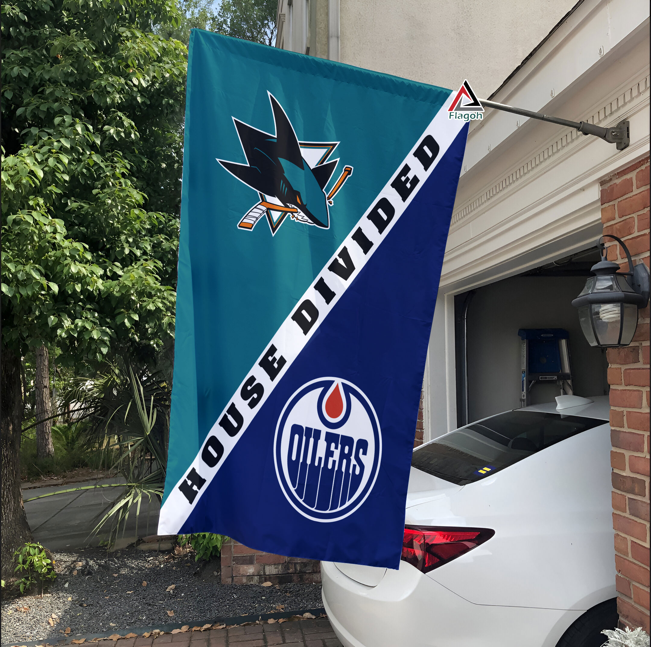 San Jose Sharks vs Edmonton Oilers House Divided Flag, NHL House Divided Flag