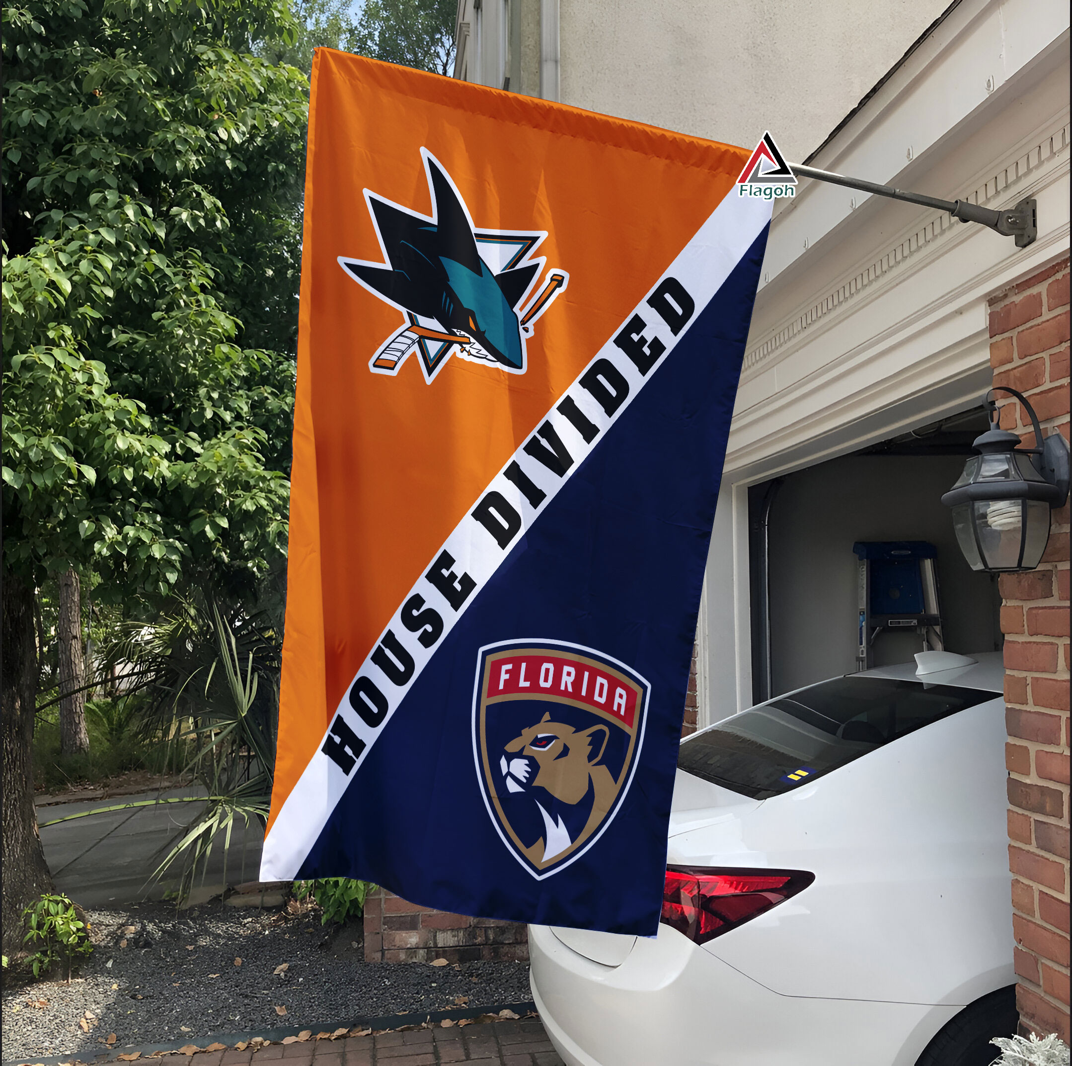 San Jose Sharks vs Florida Panthers House Divided Flag, NHL House Divided Flag