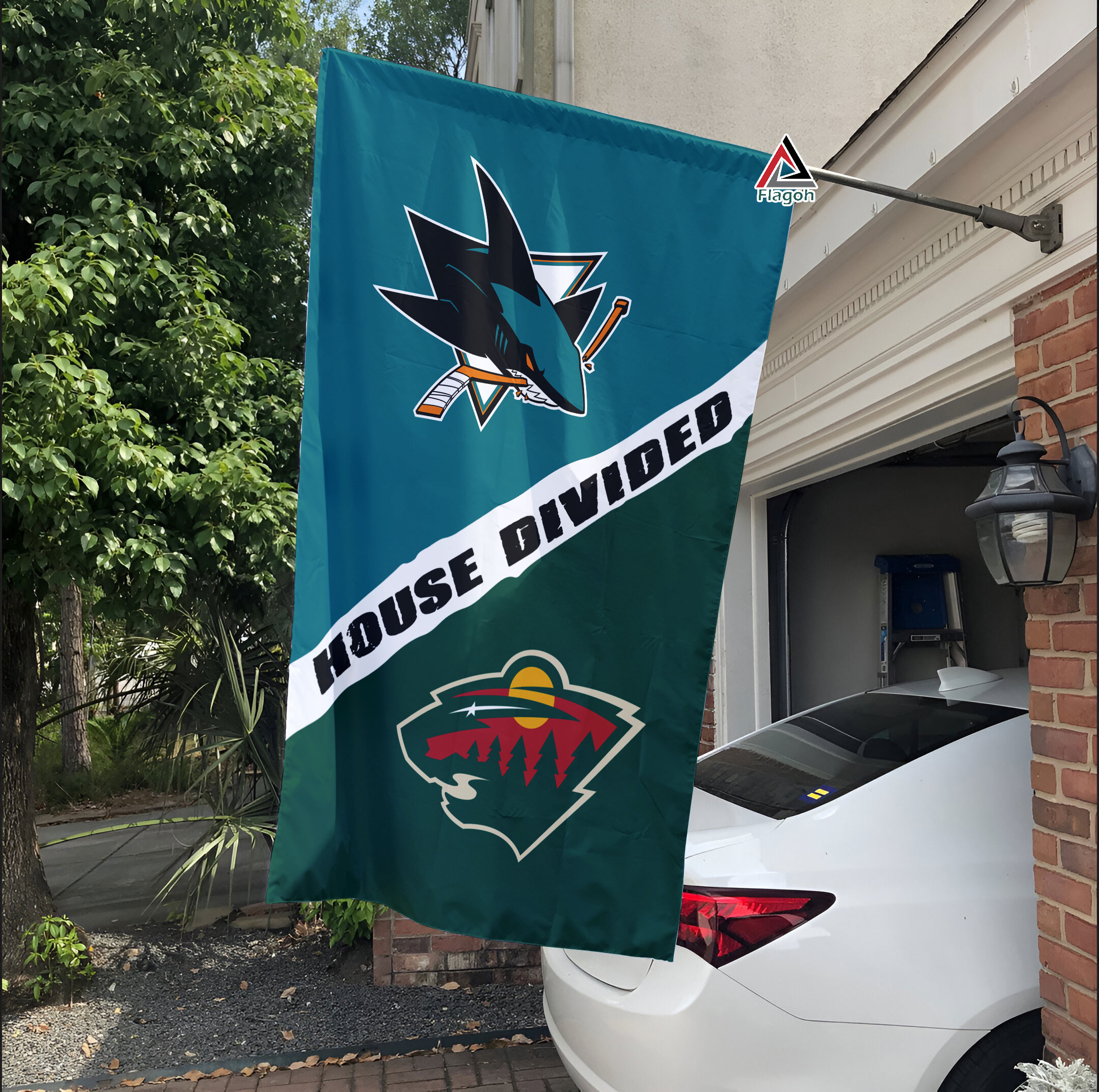 San Jose Sharks vs Minnesota Wild House Divided Flag, NHL House Divided Flag