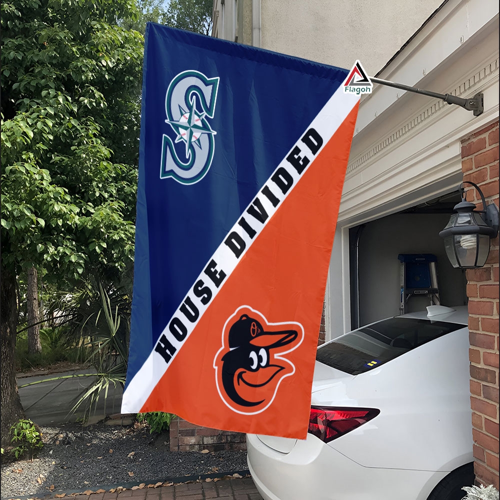 Seattle Mariners vs Baltimore Orioles House Divided Flag, MLB House Divided Flag