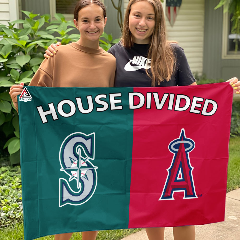 Seattle Mariners vs Los Angeles Angels House Divided Flag, MLB House Divided Flag