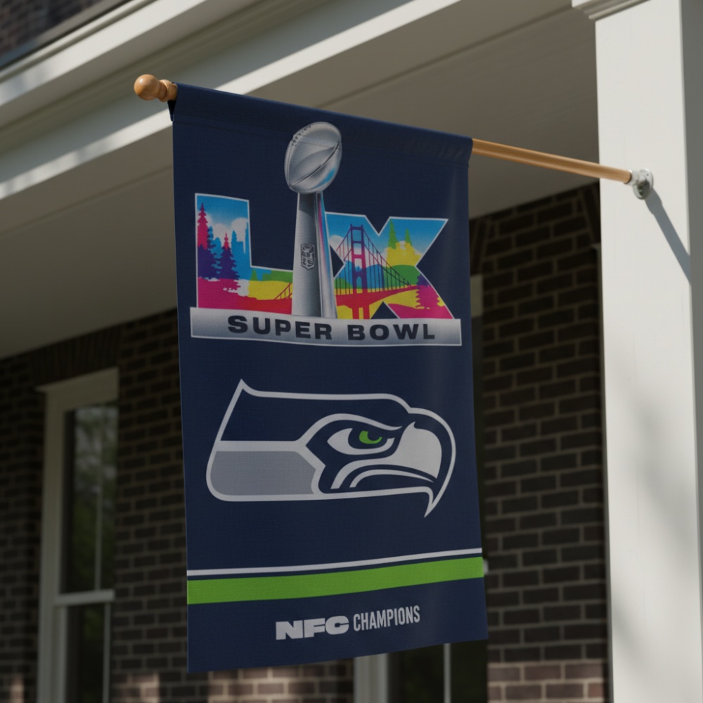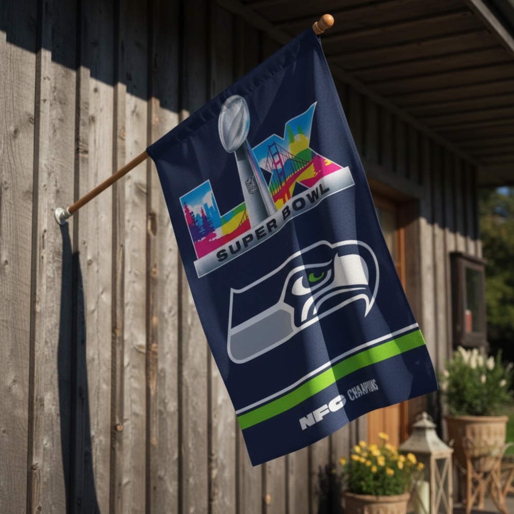 Celebrate the iconic moment with the Seattle Seahawk Super Bowl LX 2026 Flag, a must-have for every dedicated fan. Crafted from premium, weather-resistant materials, this vibrant flag boasts bold colors and sharp graphics that capture the spirit of the Seahawks’ journey to Super Bowl LX. Perfect for displaying at home, tailgates, or game day parties, it lets you show your unwavering support with pride. Lightweight and durable, the flag is easy to hang and built to withstand outdoor conditions, making it a lasting tribute to your team’s historic achievement.