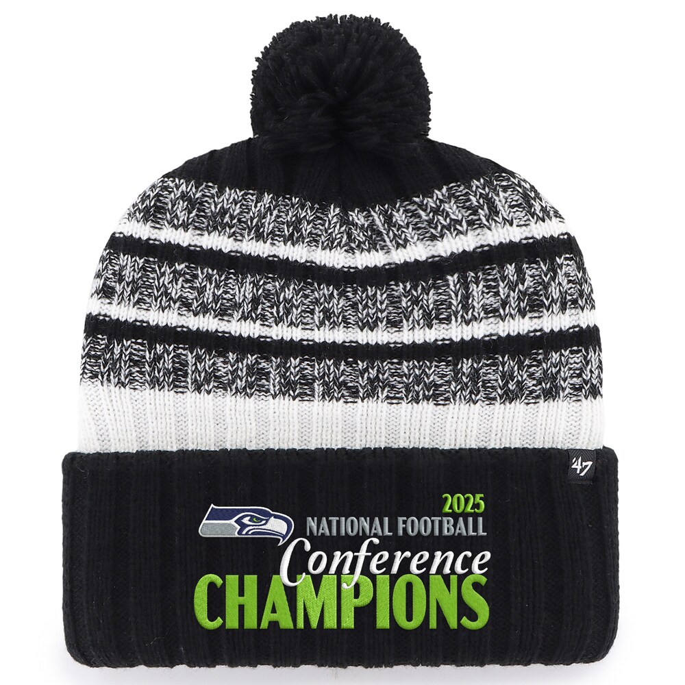 Seattle Seahawks Black ’47 2025 NFC Champions Tavern Cuffed Knit Hat – Ultimate Fan Comfort and Style