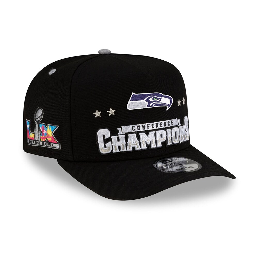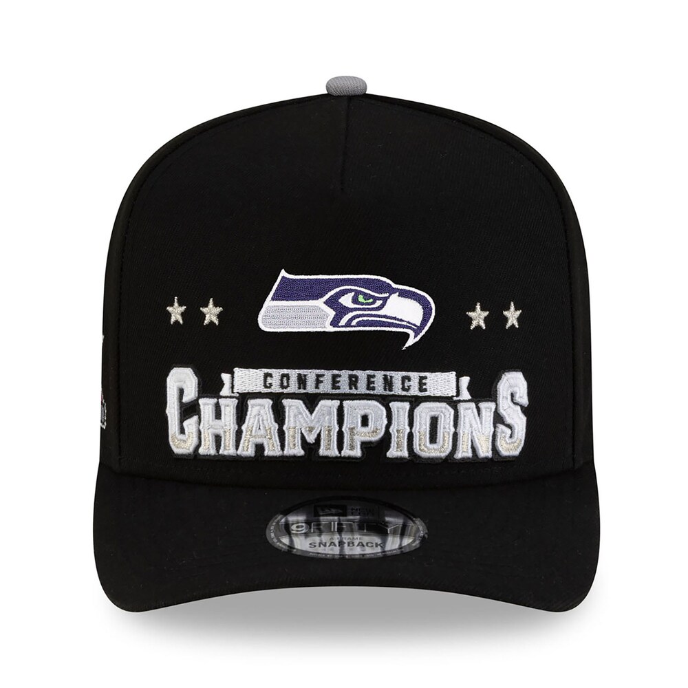 Show your team pride with the Seattle Seahawks Black New Era 2025 NFC Champions Locker Room Trophy Collection A Frame Snapback Hat. Crafted from high-quality materials, this hat offers exceptional durability and a premium feel. The breathable fabric ensures comfort during long wear, while precision stitching enhances its sturdy construction. Its adjustable snapback closure guarantees a perfect fit for all head sizes, making it ideal for both sports enthusiasts and casual fans.
