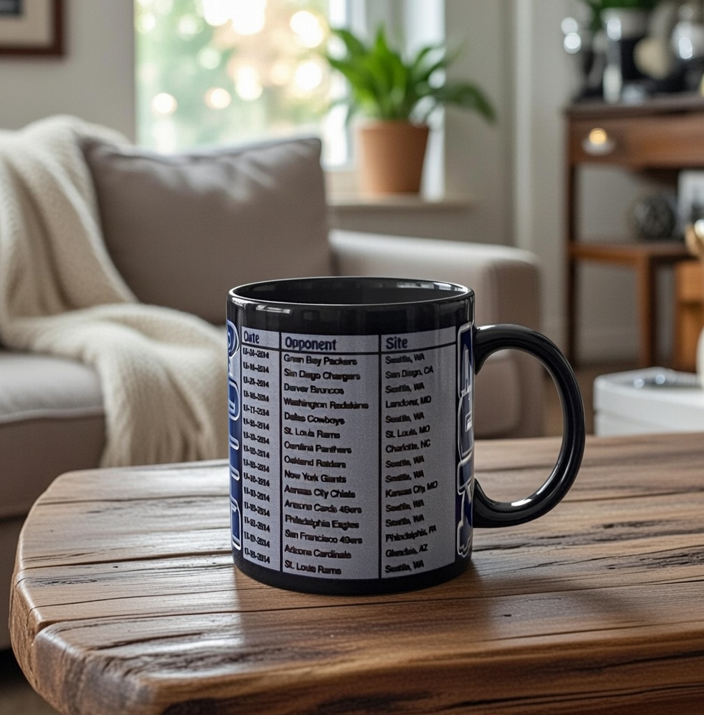 Celebrate the legendary Seattle Seahawks Super Bowl XLVIII victory with this premium ceramic mug. Crafted for fans who value quality and durability, this mug features a vibrant, long-lasting print that showcases the iconic 2014 season recap. Its ergonomic handle ensures a comfortable grip, making it perfect for your morning coffee or tea. Whether at home or the office, this mug stands out as a tribute to an unforgettable championship moment, combining both style and functionality effortlessly.