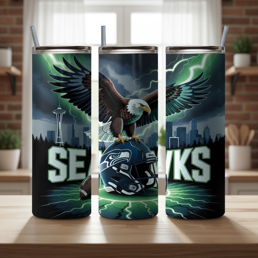 Seattle Seahawks Tumbler with NFL Bald Eagle Skyline Design