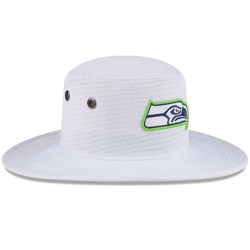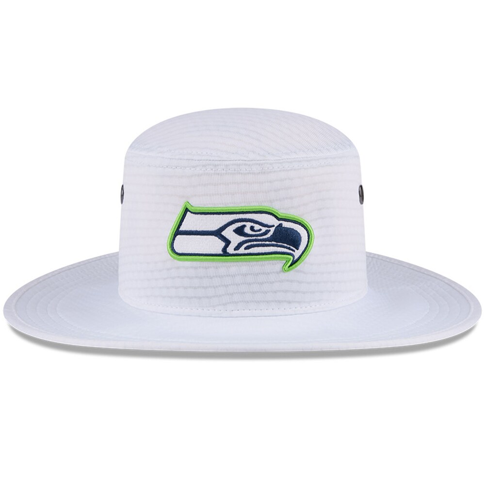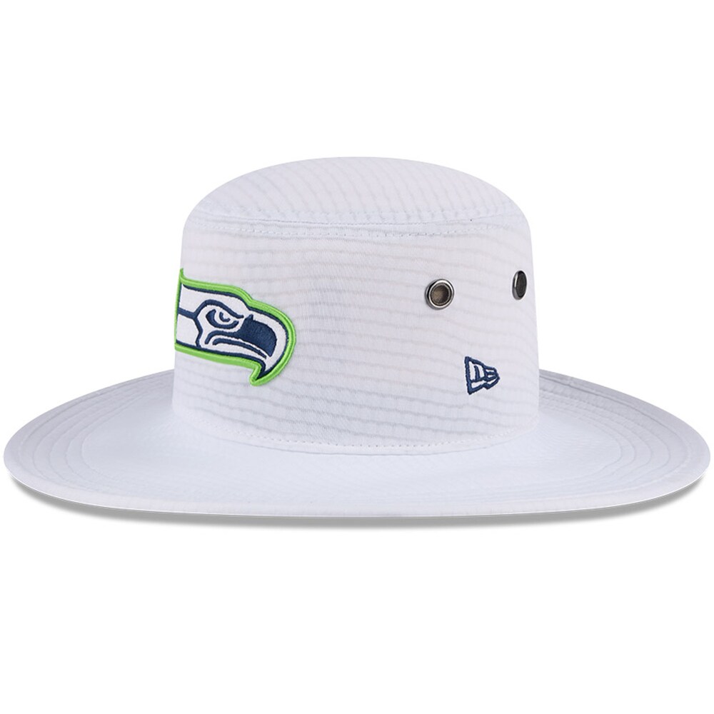 Seattle Seahawks White New Era 2024 NFL Training Camp Panama Bucket Hat for Fans and Outdoors