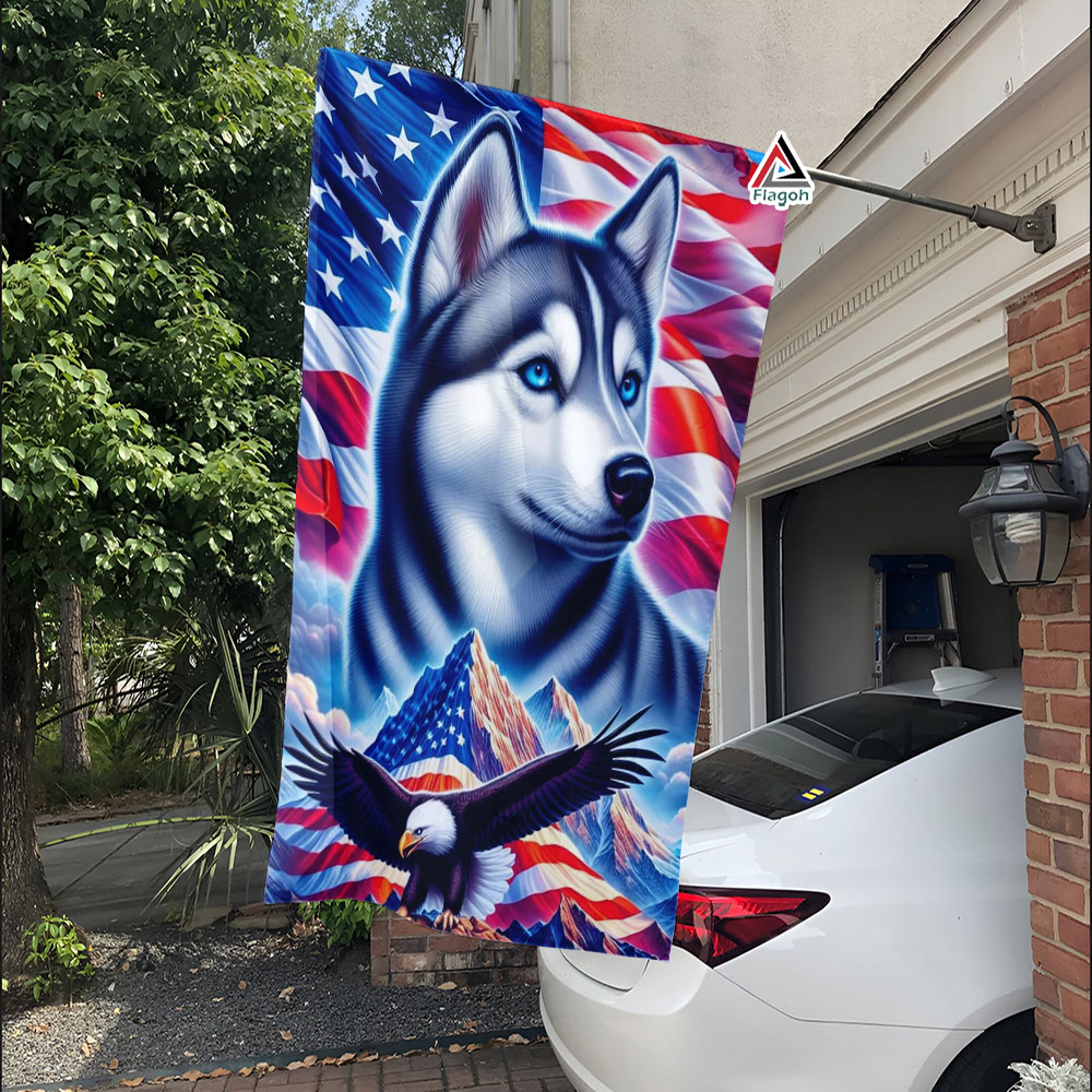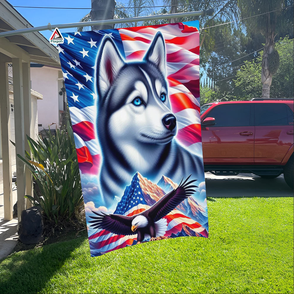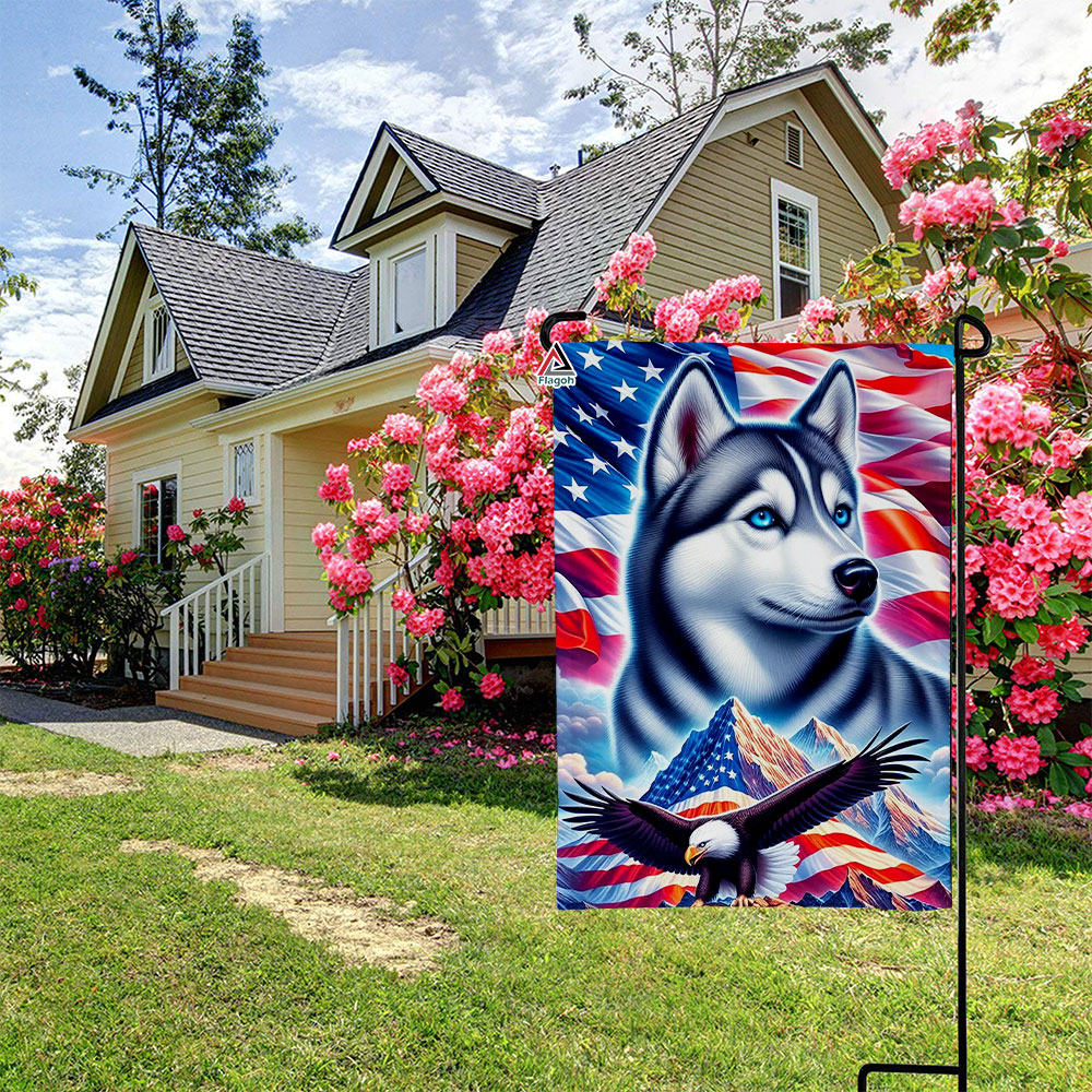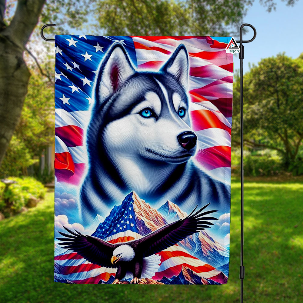 Siberian Husky American USA Flag, 4th of July Dog Lover Flag, Dog Breed Independence Day Garden Flag