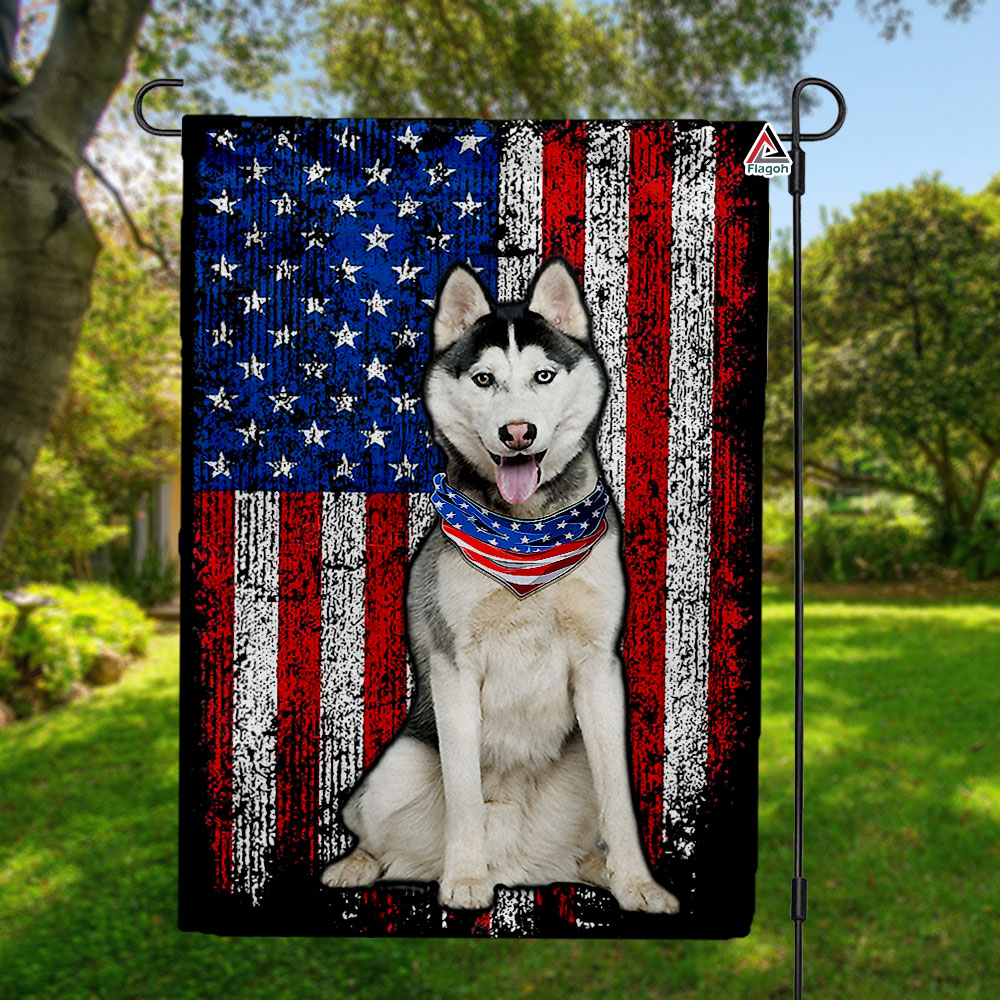 Siberian Husky Dog American Flag, Patriotic Husky Double Sided Garden Flag