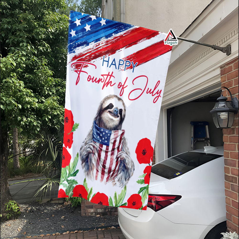 Sloth Patriotic 4th Of July American Flag, Sloth Happy Independence Day Flag