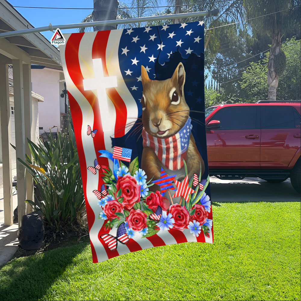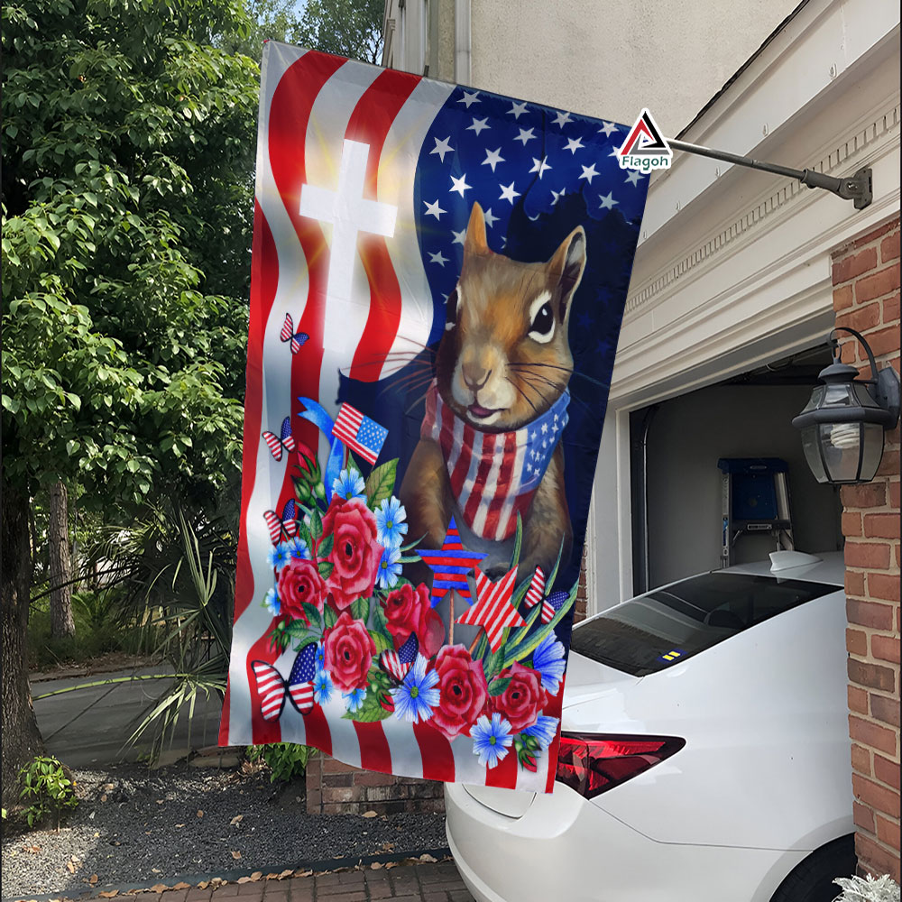 Squirrel America 4th July Flag, Squirrel Patriotic Happy Independence Day Flag