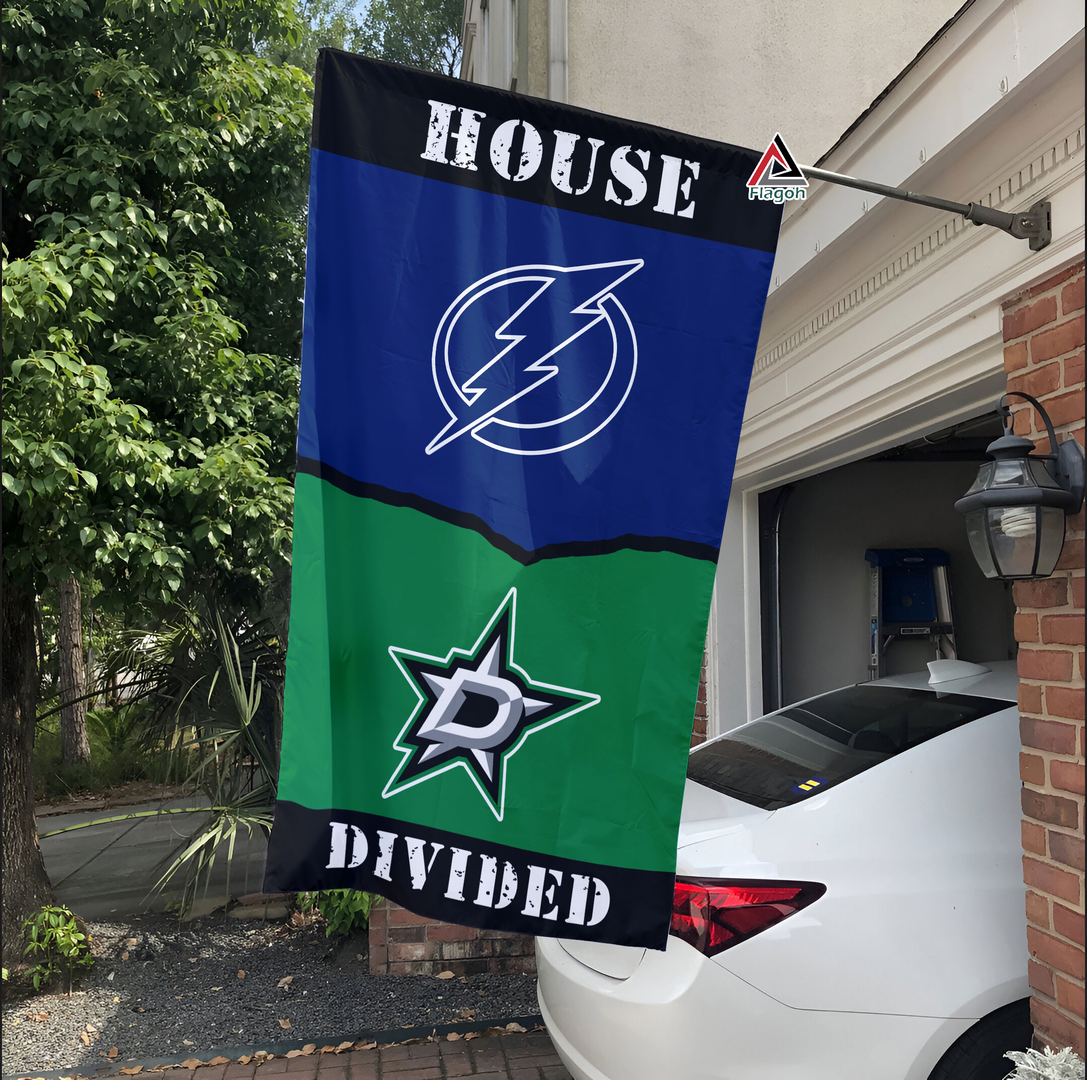 Tampa Bay Lightning vs Dallas Stars House Divided Flag, NHL House Divided Flag