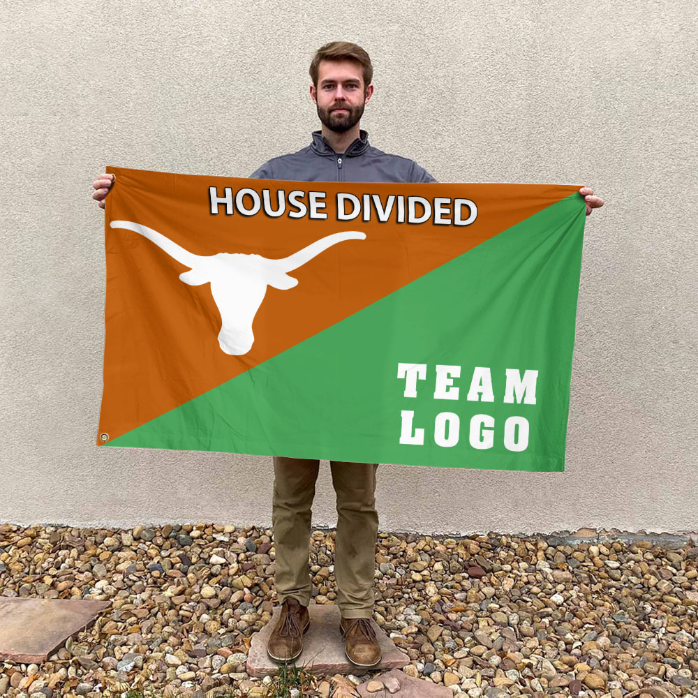 Texas-Longhorns vs Custom Team House Divided Flag