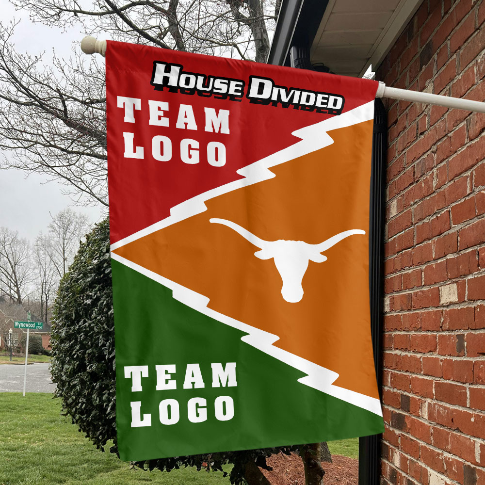 Texas-Longhorns vs Custom Team House Divided Flag, Personalized Spirit Flag
