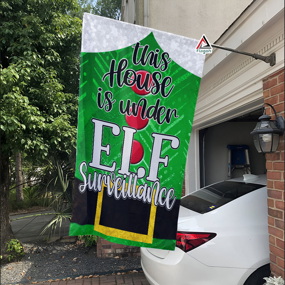 This House is Under Elf Surveillance Flag, Merry Christmas Elf Funny Garden Flag